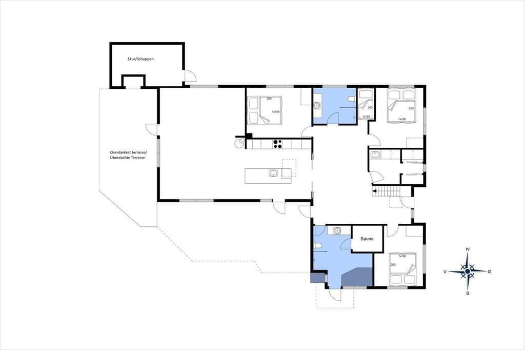 Draußen öffnet sich das Ferienhaus zu mehreren großen Terrassenbereichen, auf denen du den ganzen Tag die Sonne genießen kannst. Die schön angelegten Terrassen bieten dir sowohl Entspannung als auch Aktivitäten. Hier kannst du deinen Kaffee in Ruhe genießen, während die Sonnenstrahlen dich wärmen, oder dich mit Familie und Freunden zu einem leckeren Abendessen am Grill versammeln, wenn der Abend anbricht. Das energieeffiziente Ferienhaus ist mit einer Solaranlage ausgestattet, sodass du den Komfort und die Wärme im Haus genießen kannst, während du gleichzeitig etwas Gutes für die Umwelt tust.