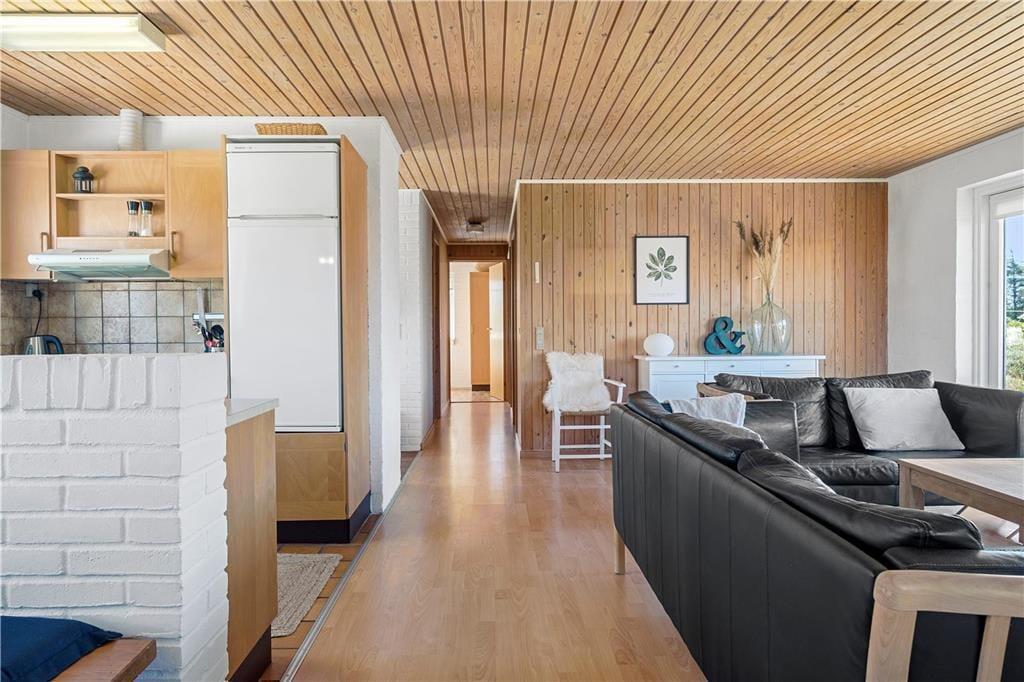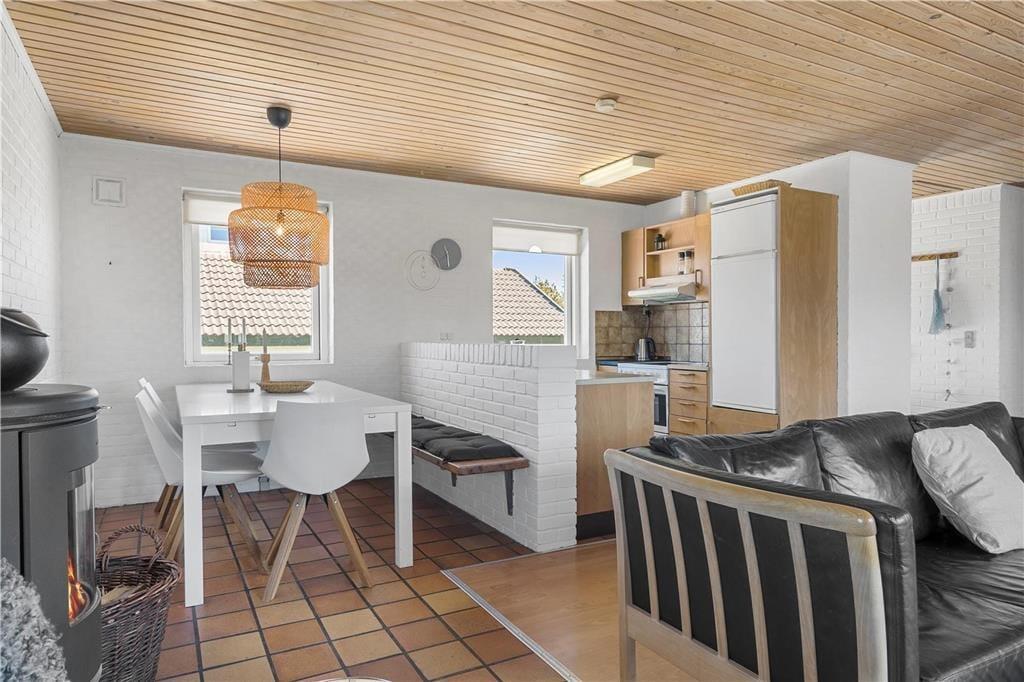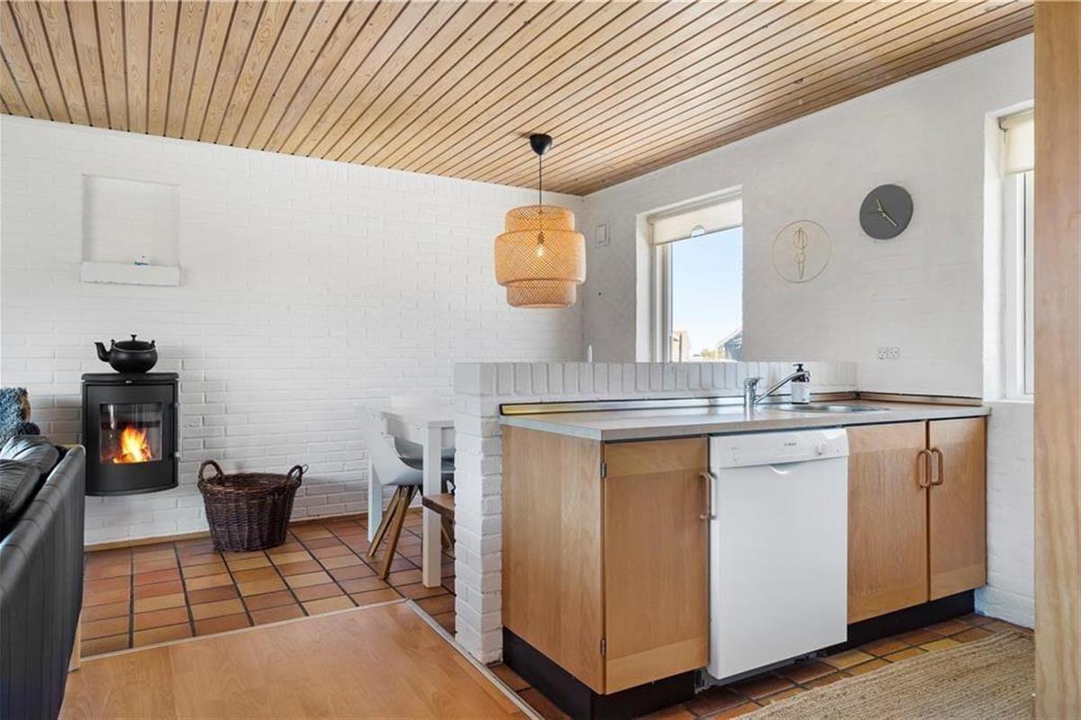 Dit sfeervolle vakantiehuis in Vorupør, Noord-Jutland, biedt een comfortabele en gezellige verblijfplaats voor zes personen en twee huisdieren. Het interieur is warm ingericht met een houtkachel en elektrische verwarming, waardoor het altijd aangenaam is. De woning beschikt over moderne voorzieningen zoals een wasmachine, vaatwasser en gratis Wi-Fi.