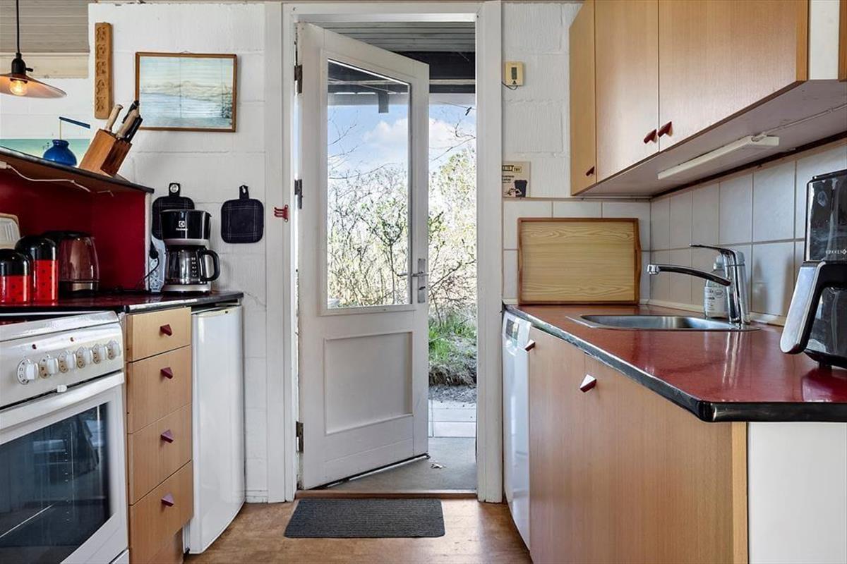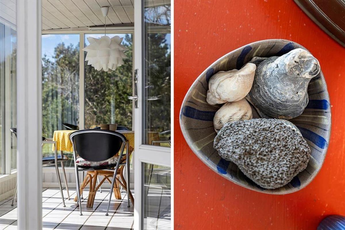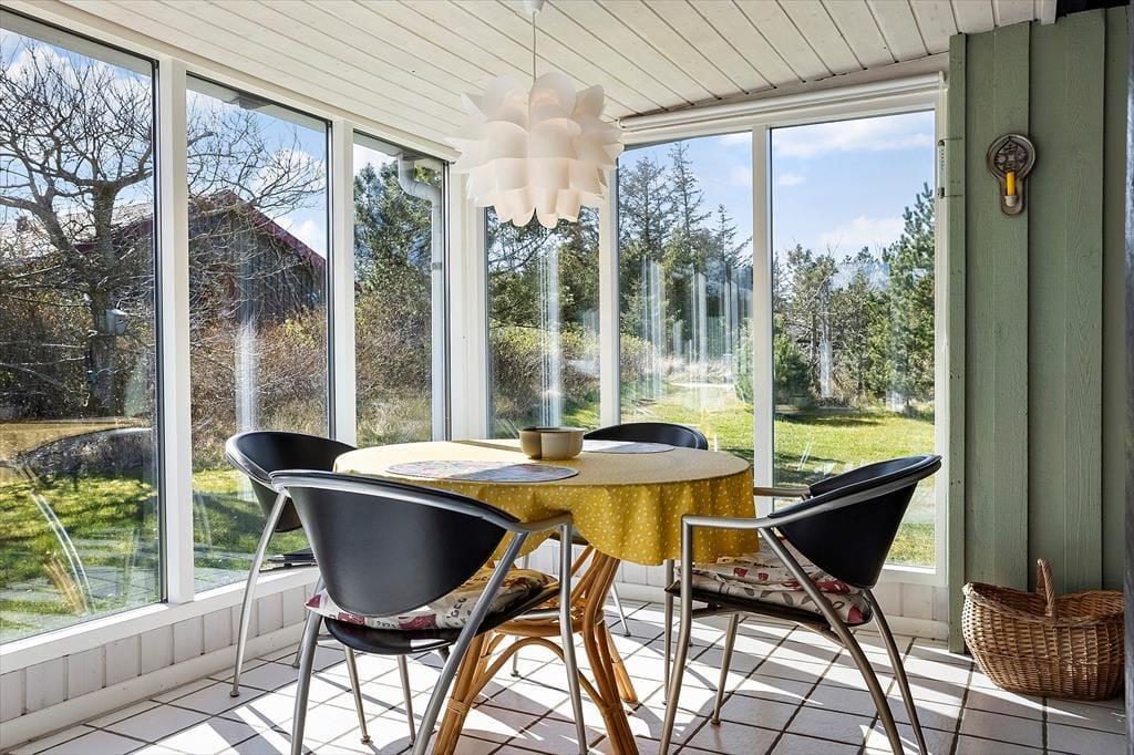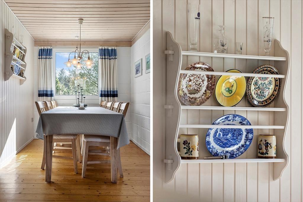 Drinnen empfängt dich sofort die besondere Atmosphäre eines klassischen dänischen Ferienhauses. Die Kombination aus Holzwänden, liebevoller Einrichtung und gemütlichem Licht schafft einen Ort, an dem man sofort zur Ruhe kommt. Das Haus ist energieeffizient mit Wärmepumpe und Kaminofen ausgestattet – perfekt für kuschelige Abende, wenn draußen der Wind weht. Küche und Wohnzimmer gehen offen ineinander über und laden zu gemeinsamen Stunden beim Kochen, Spielen oder Entspannen ein. Besonders schön ist der Wintergarten, der direkt auf eine nach Süden gerichtete Terrasse führt – hier kannst du das Tageslicht genießen, die Natur beobachten oder einfach mit einer Tasse Tee die Zeit vergessen.