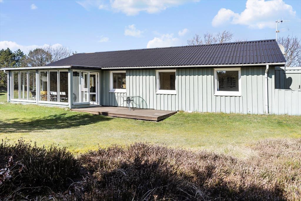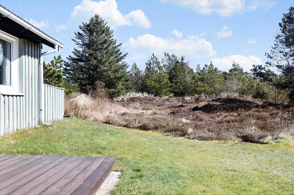 Das Grundstück rund um das Haus ist grün, friedlich und von typisch dänischer Natur umgeben. Auf der ostseitigen Terrasse genießt du die ersten Sonnenstrahlen bei einem heißen Kaffee, während du den Vögeln lauschst und in den Tag startest. Die südlich gelegene Terrasse lädt zum Verweilen in der Nachmittagssonne ein – vielleicht mit einem guten Buch oder einem Glas Wein. Hier kannst du das einfache Leben genießen, mit Blick auf Heidekraut, Dünenlandschaft und die Weite des Himmels. Die Natur beginnt direkt vor deiner Tür.