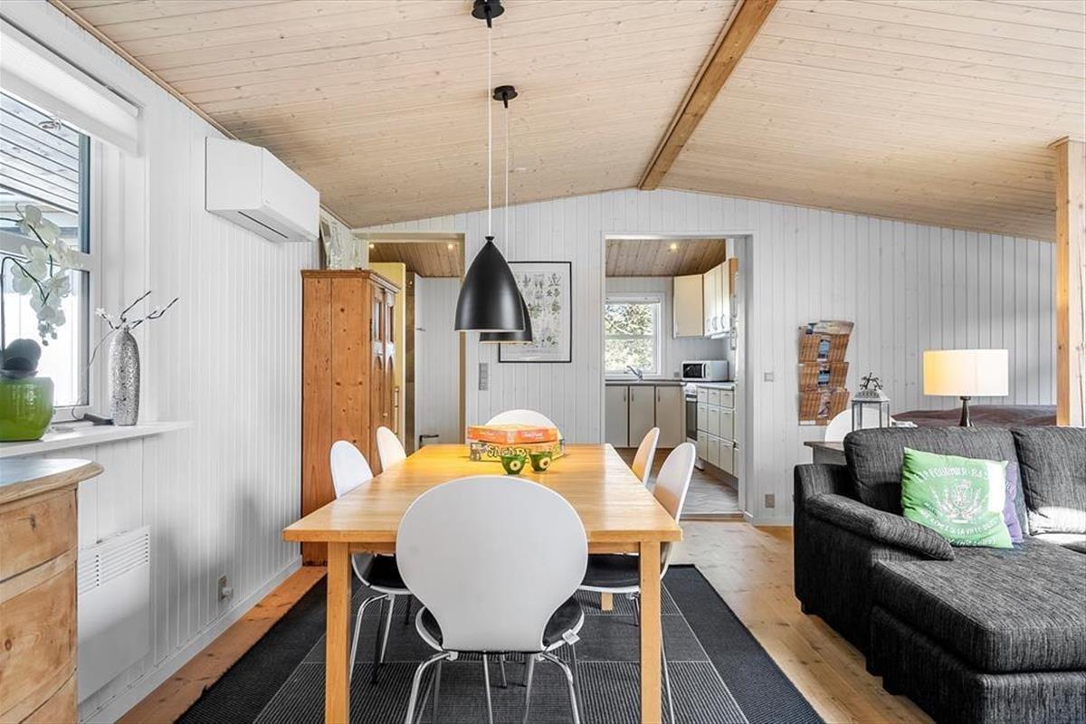 Das Ferienhaus in der Blåmunkevej 49 empfängt dich mit einer warmen und einladenden Atmosphäre. Hier finden bis zu sechs Personen Platz, was es ideal für eine kleine Familie oder eine Gruppe von Freunden macht. Die frische Renovierung sorgt für ein helles und modernes Ambiente, während der gemütliche Kamin das Herzstück vieler entspannter Momente bildet, bei denen das Flackern der Flammen eine ganz besondere Stimmung schafft. Stell dir vor, wie du dich nach einem erlebnisreichen Tag hier versammelst, die Wärme genießt und dem Knistern des Feuers lauschst. Der offene Wohnbereich mit Küche ist praktisch und einladend zugleich – perfekt für die Zubereitung und das gemeinsame Genießen von Mahlzeiten mit Blick in den Garten.