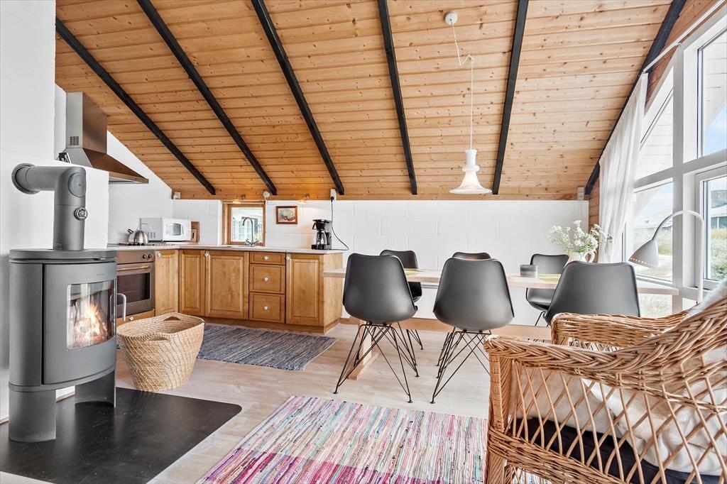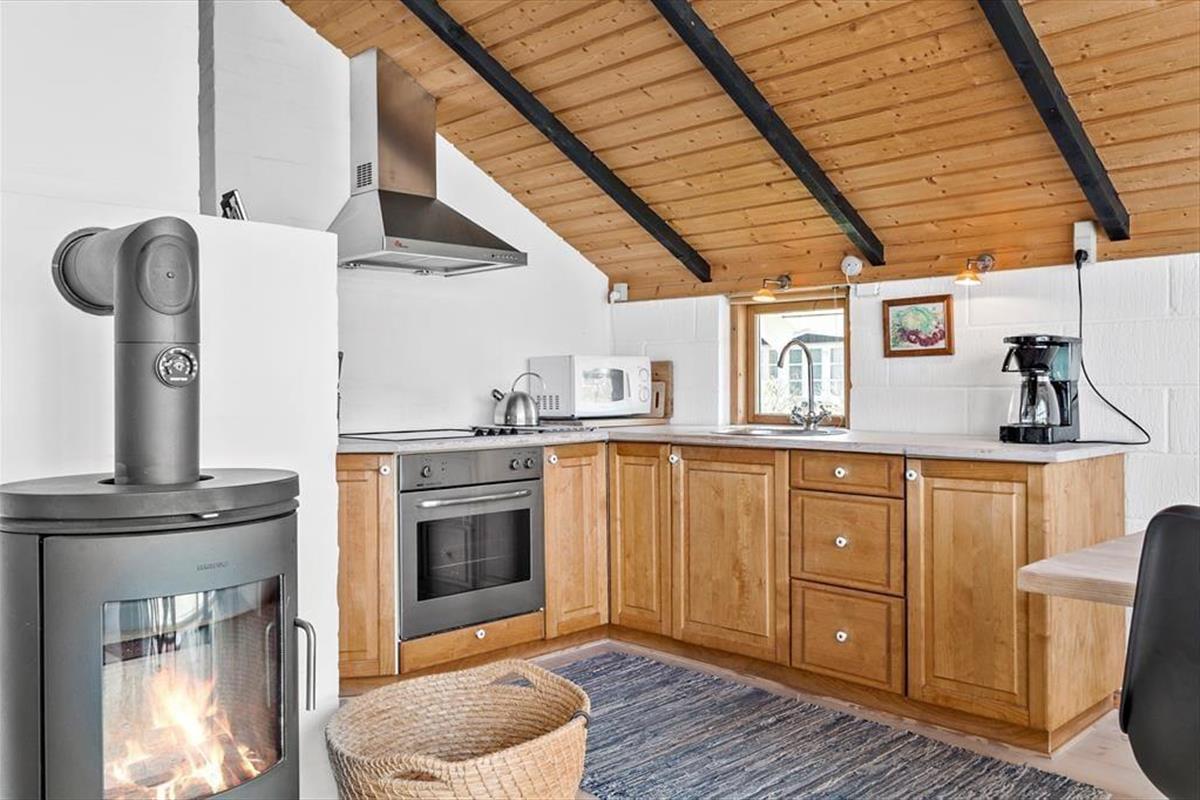 Wenn du das Ferienhaus auf Mose-Bøllevej 14 betrittst, wirst du von einer warmen und einladenden Atmosphäre empfangen. Das gemütliche Wohnzimmer mit Kaminofen ist perfekt für entspannte Abende, während das Feuer knistert und die Wärme den Raum erfüllt. Die moderne Wärmepumpe sorgt das ganze Jahr über für eine angenehme Temperatur. Die Küche ist offen mit dem Wohnzimmer verbunden, sodass sich Kochen und gemeinsame Mahlzeiten wunderbar verbinden lassen. Das Ferienhaus ist mit Liebe zum Detail eingerichtet und vermittelt das Gefühl von Zuhause – mit einem Hauch von Ferienluxus.