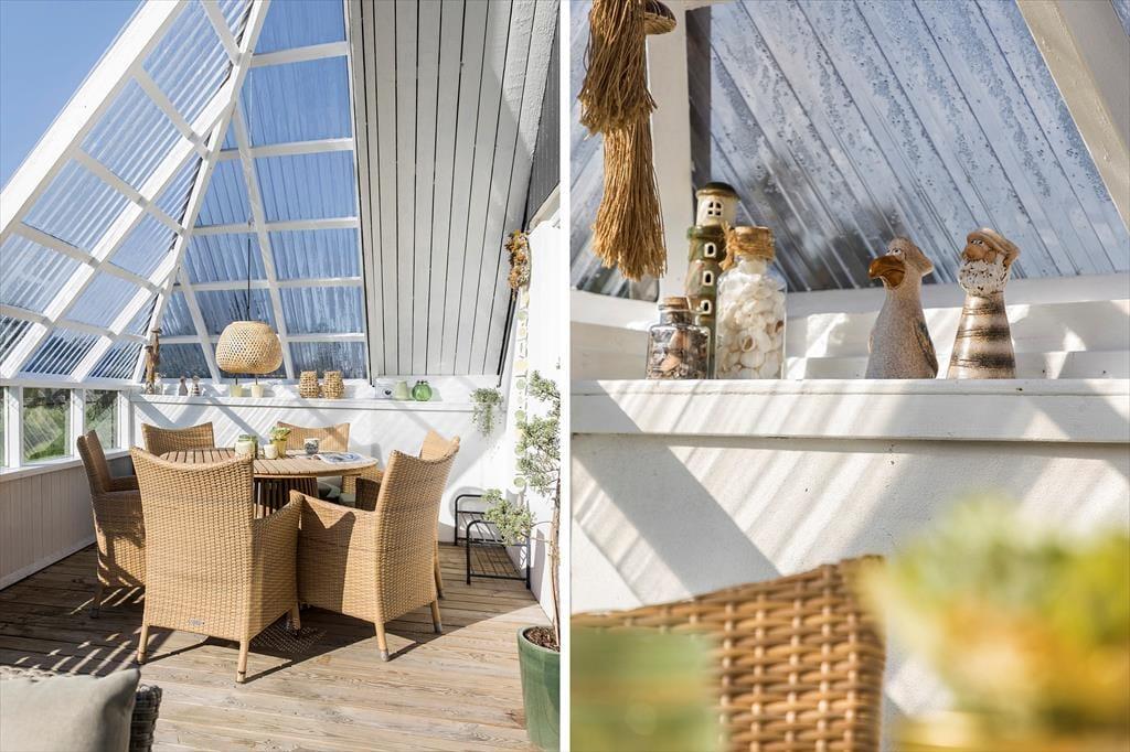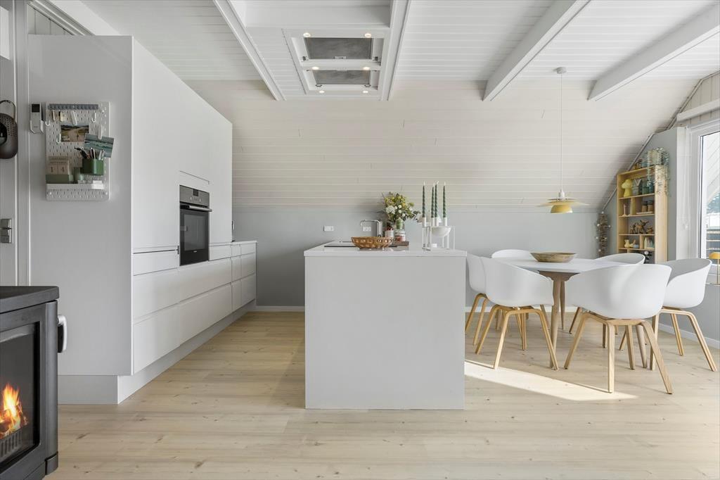 Das Ferienhaus verfügt über 2 Schlafzimmer. Ein Schlafzimmer mit einem Doppelbett und ein Schlafzimmer mit 2 Einzelbetten. Schönes Badezimmer mit Fußbodenheizung, Whirlpool und Waschmaschine. Gut ausgestattete Küche mit allem, was Sie für die Zubereitung leckerer Feriengerichte benötigen. Der helle Wohnbereich hat weiß gestrichene Backsteinwände und Holzvertäfelung sowie helle Holzbalken an der Decke. Schöne und komfortable Möblierung, Kaminofen, Flachbild-TV und energiesparende Wärmepumpe. Ein sehr gepflegtes Ferienhaus.