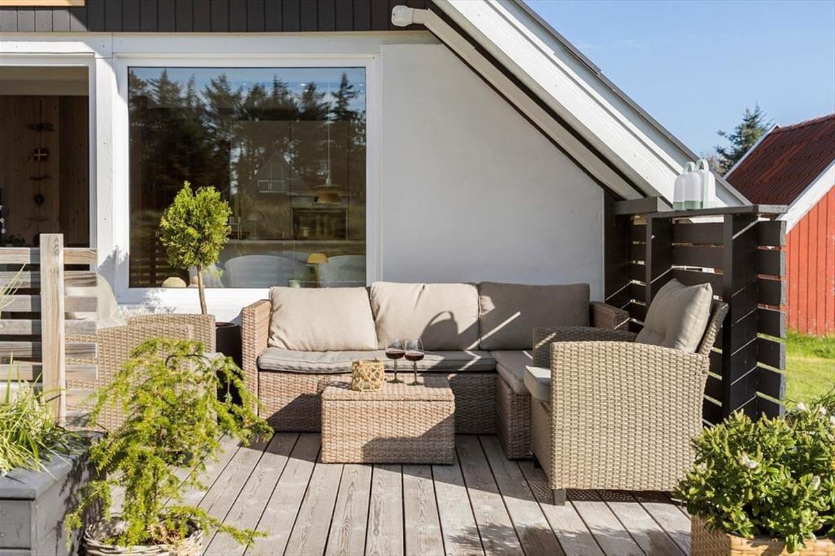 Ferienhaus mit überdachter, nach Süden ausgerichteter Terrasse und hohem Komfort, gelegen in Sdr. Vorupør in Thy, das im Jahr 2024 umfassend renoviert wurde.