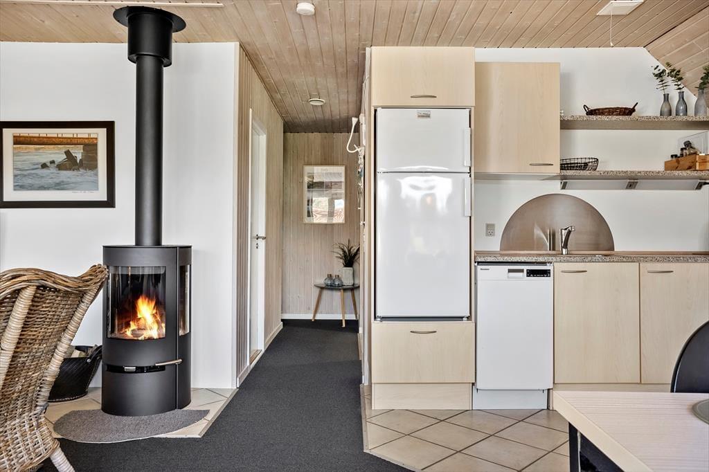 Betrete ein gemütliches Ferienhaus, in dem Komfort und Wärme harmonisch zusammenspielen. Das Wohnzimmer mit seinem Kaminofen wird schnell zum Treffpunkt der Familie, wenn die Erlebnisse des Tages geteilt und der Abend mit Spielen und Gesprächen am knisternden Feuer genossen wird. Die offene und funktionale Küche ermöglicht es, auch beim Kochen gemeinsam Zeit zu verbringen. Mit Platz für acht Personen und einer hellen und einladenden Einrichtung bietet das Haus den idealen Rahmen für kleine und große Ferienmomente, in denen sich alle wohlfühlen können.
