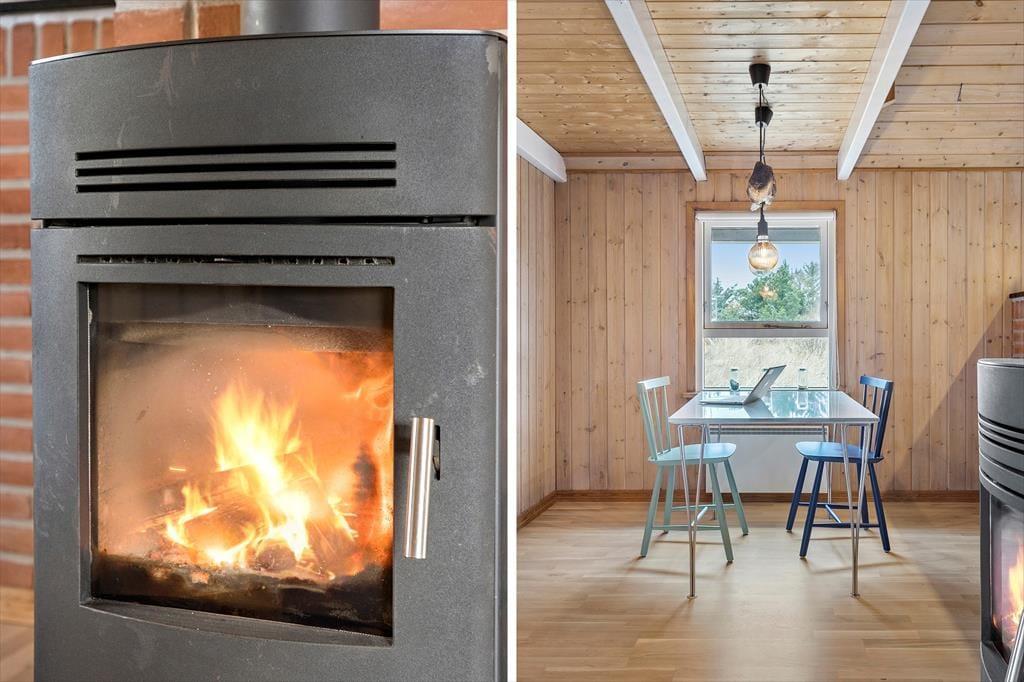 Dieses Ferienhaus strahlt Gemütlichkeit aus, sobald du die Tür öffnest. Mit Platz für bis zu fünf Personen ist es ideal für einen erholsamen Urlaub in heimeliger Atmosphäre. Das knisternde Feuer im Kamin ist der natürliche Mittelpunkt des Wohnzimmers und lädt nach einem erlebnisreichen Tag zum Verweilen ein. Eine energieeffiziente Wärmepumpe sorgt das ganze Jahr über für ein angenehmes Raumklima. Die gemütliche Einrichtung schafft eine entspannte Stimmung, in der du eine ruhige Abendzeit genießen kannst.
