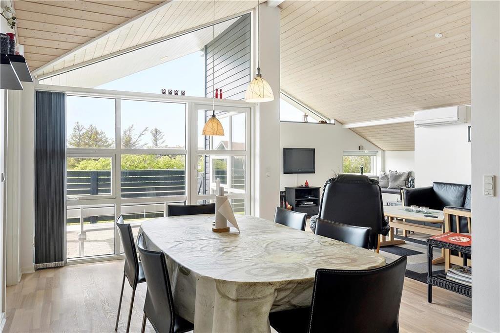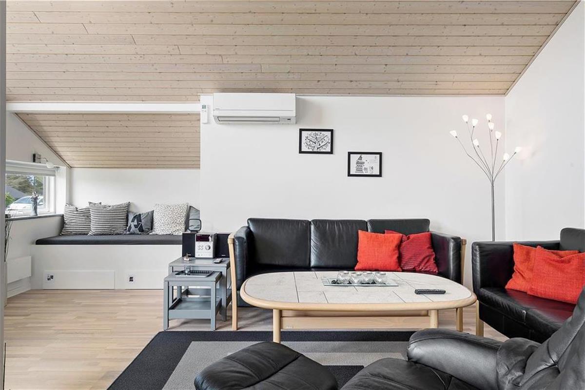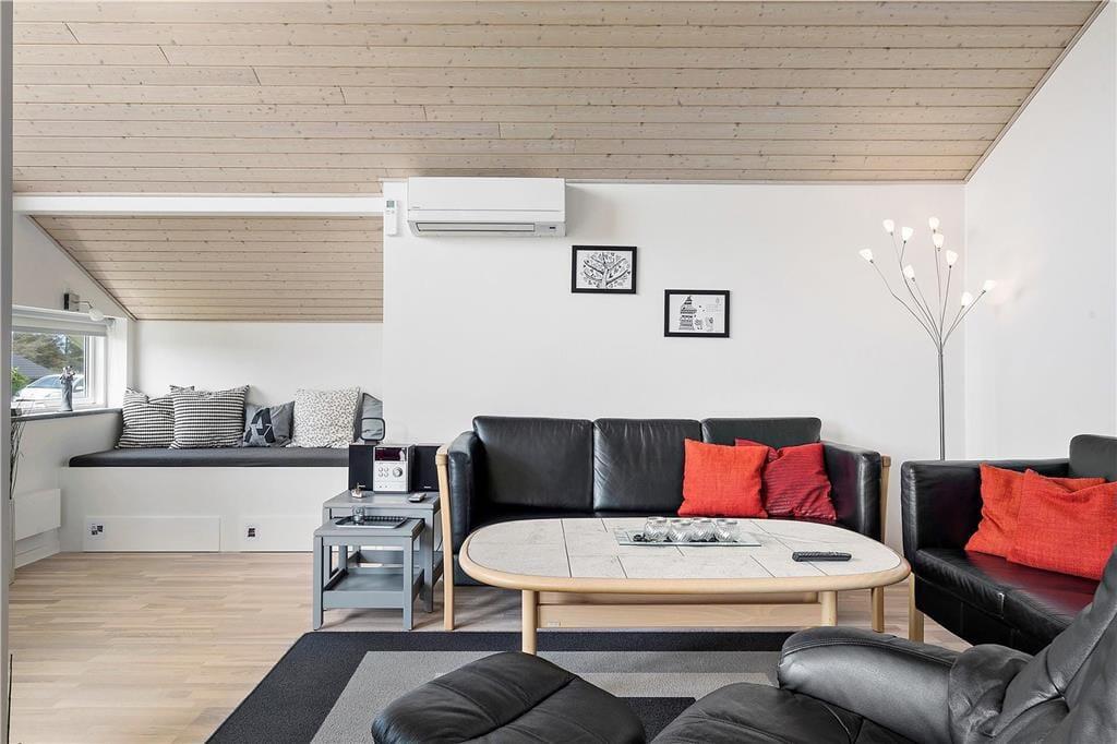Betrete dieses helle und einladende Ferienhaus, das ideal für entspannte Ferien ist. Das Haus strahlt Wärme aus, und moderne Annehmlichkeiten wie die Wärmepumpe sorgen dafür, dass du dich zu jeder Jahreszeit wohlfühlst. Der offene Grundriss macht es leicht, Zeit mit Familie oder Freunden zu verbringen – sei es beim Brettspielen, bei Gesprächen oder einfach beim gemeinsamen Entspannen. Die praktische Küche lädt dazu ein, Mahlzeiten zuzubereiten, während der Rest der Familie sich im Wohnbereich entspannt.