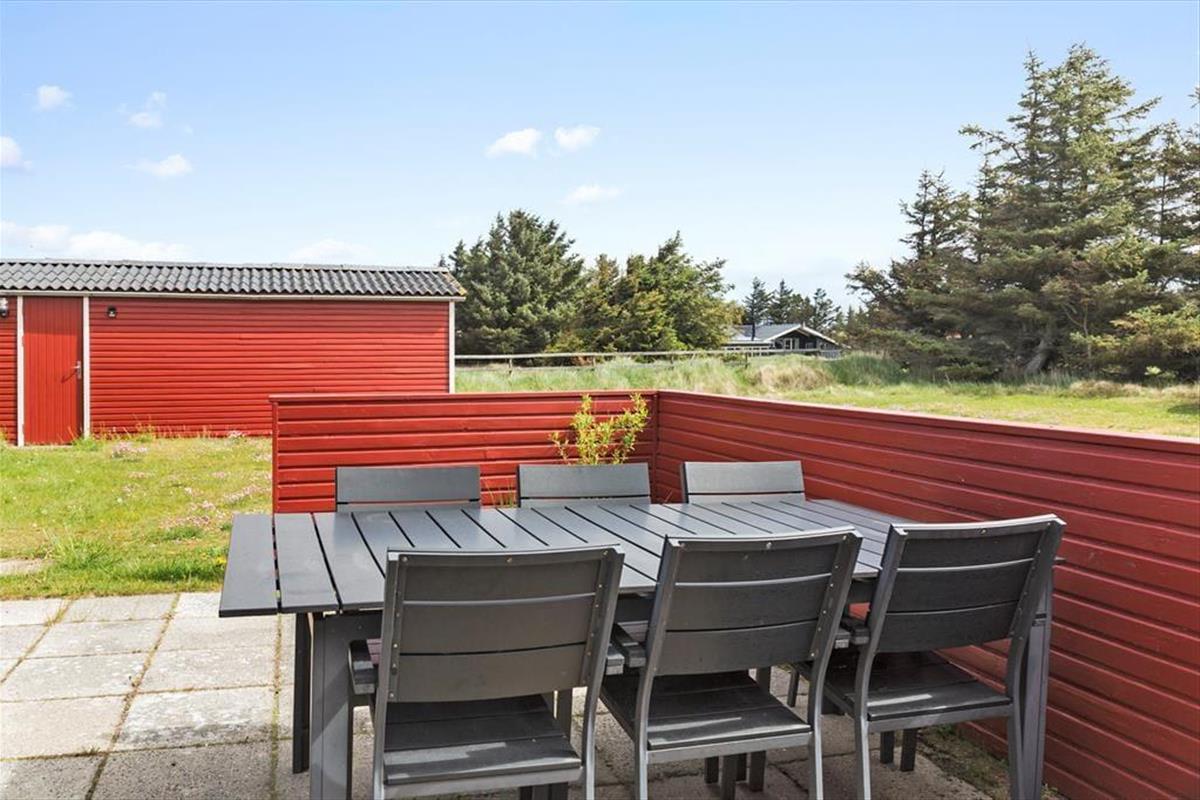 Draußen erwartet dich ein schöner Garten, der zu Spiel, Entspannung und Zusammensein an der frischen Luft einlädt. Das Ferienhaus verfügt über eine großzügige Holzterrasse, auf der du deinen Morgenkaffee genießen, das Abendessen grillen oder einfach entspannen und den Klängen der Natur lauschen kannst. Der umliegende Garten bietet Platz für Kinder und die vierbeinigen Familienmitglieder, die hier ebenfalls herzlich willkommen sind. Egal, ob du aktiv sein oder einfach nur die Sonne genießen möchtest, dieses Ferienhaus bietet die perfekten Rahmenbedingungen.