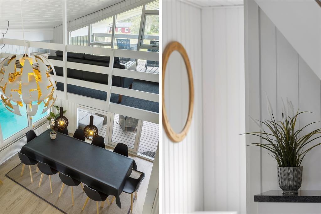 Betreten Sie dieses geräumige und gepflegte Ferienhaus, wo Komfort und Stil Hand in Hand gehen. Das Ferienhaus bietet eine moderne und effiziente Heizung mit einer Luft-Wasser-Wärmepumpe, die niedrigere Energiekosten und eine angenehme Atmosphäre das ganze Jahr über gewährleistet. Die Einrichtung ist hell und einladend mit großen Fensterfronten, die das Tageslicht hereinlassen und eine warme und gemütliche Atmosphäre schaffen. Im großen Wohnzimmer können Sie sich um den Kamin versammeln und die Gesellschaft der anderen genießen, während das Feuer knistert. Das Highlight des Hauses ist jedoch der Innenpool, in dem die Kinder stundenlang spielen können, während die Erwachsenen in der Sauna oder im Whirlpool entspannen.
