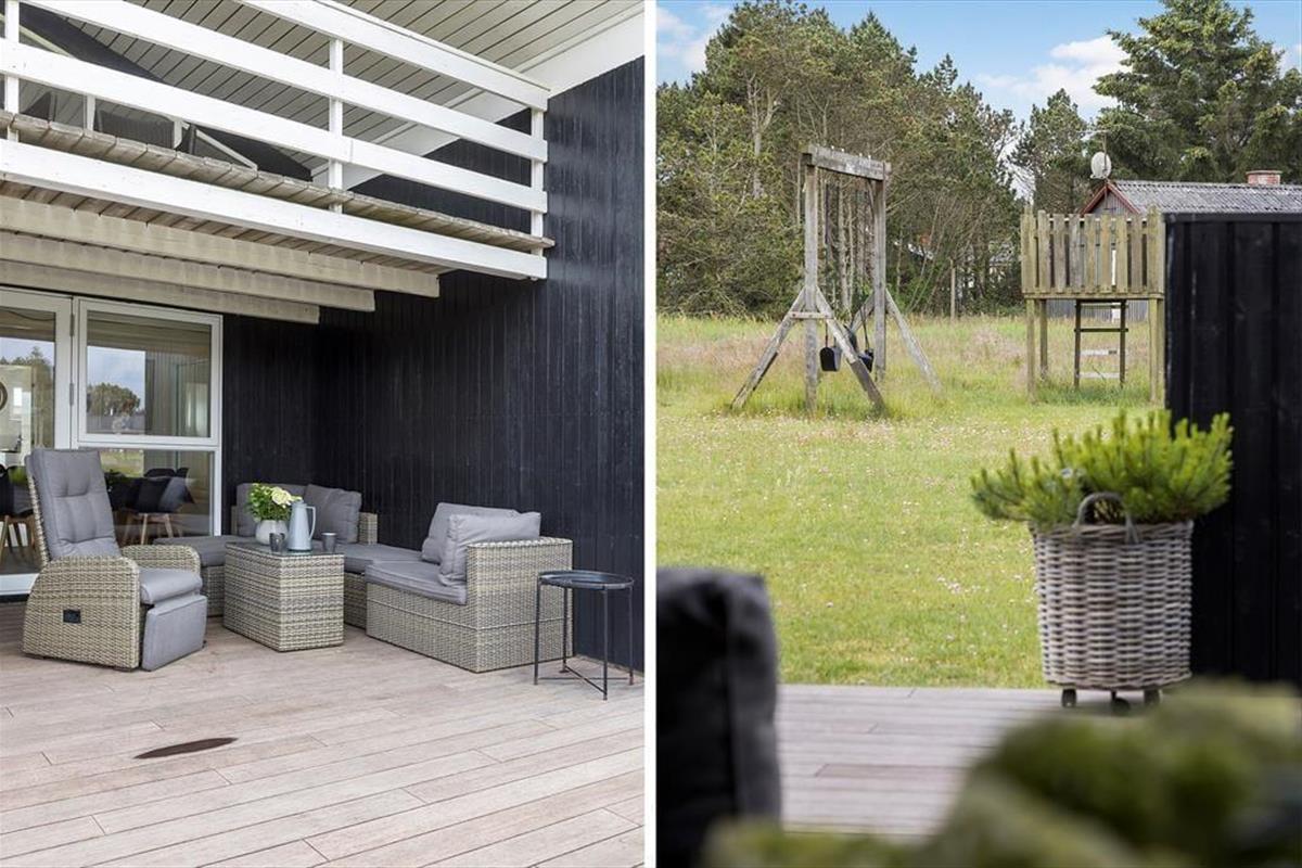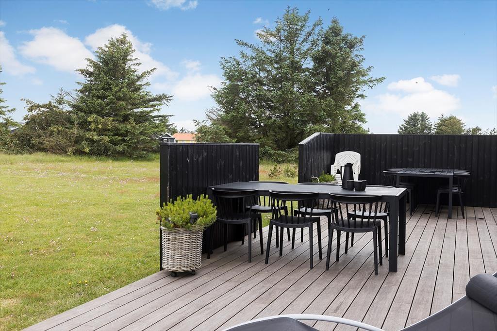 Draußen erwartet Sie eine schöne große Holzterrasse mit mehreren gemütlichen Ecken, wo Sie die Sonnenstrahlen und die frische Meeresluft genießen können. Die Terrasse ist perfekt für den Morgenkaffee, das Grillen am Nachmittag und die Entspannung am Abend. Es gibt viel Platz für sowohl Spiel als auch Entspannung, und die vielen Ecken bieten die Möglichkeit, Windschutz oder Schatten an einem heißen Sommertag zu finden. Das Grundstück lädt zu Outdoor-Aktivitäten ein, bei denen die ganze Familie sich mit verschiedenen Gartenspielen vergnügen oder einfach die Ruhe und Natur um sich herum genießen kann.