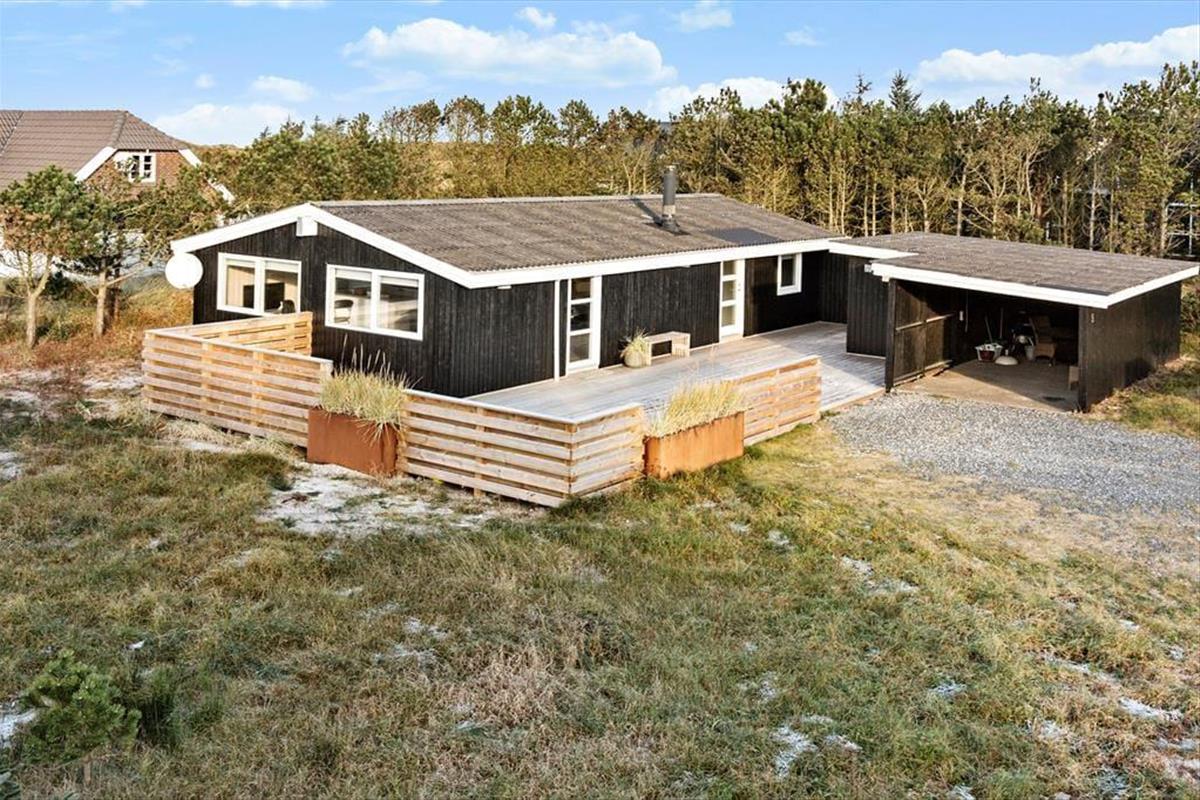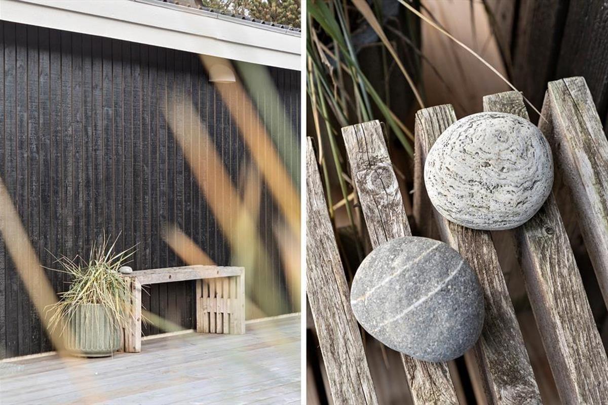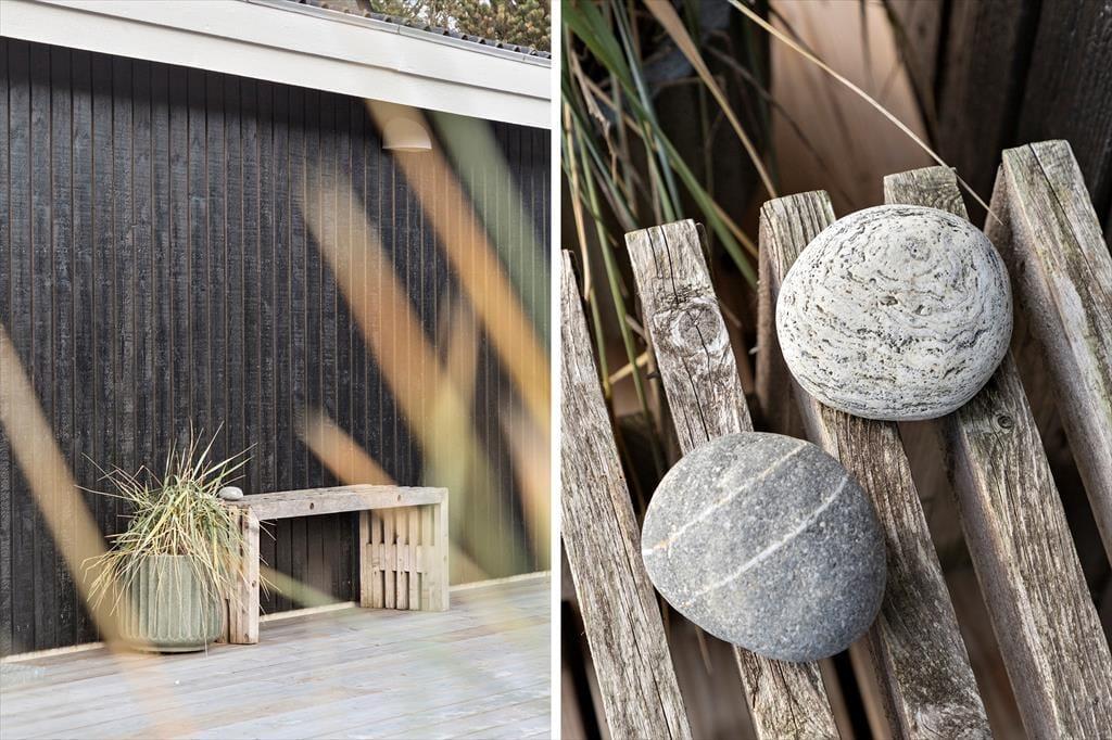 Draußen erwartet dich eine großzügige Terrasse, die zu Entspannung und gemütlichen Mahlzeiten im Freien einlädt. Die Terrasse ist von Kiefern umgeben, die eine wunderbare natürliche Abgrenzung schaffen und eine intime Atmosphäre bieten. Beginne den Tag mit einer Tasse Kaffee, während die Morgensonne wärmt, oder genieße das Abendessen bei dem Klang des Windes in den Bäumen. Auf dem großen Grundstück gibt es viel Platz für Kinder zum Spielen und Erkunden, während die Erwachsenen mit einem Glas Wein auf der Terrasse entspannen. Hier kann die ganze Familie die Freude am einfachen Ferienhausleben entdecken.