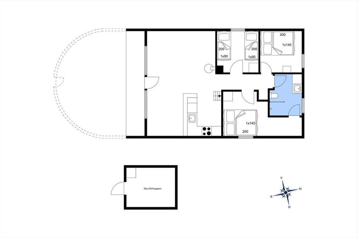 Dieses lichtdurchflutete und einladende Ferienhaus, in dem die drei gut ausgestatteten Schlafzimmer ruhigen Schlaf und Träume voller Meeresrauschen versprechen. Die offene Küche mit Essbereich, schön integriert mit dem Wohnbereich, bildet das Herz des Hauses. Hier kann sich die Familie bei den Mahlzeiten versammeln, während die Tagesabenteuer am großen Esstisch geplant werden, oder sich in der Couch mit einem guten Buch und dem Geräusch des knisternden Feuers vom Kamin entspannen. Diese Wärmequelle, zusammen mit einer effizienten Wärmepumpe, sorgt das ganze Jahr über für eine angenehme Temperatur und ist dabei energieeffizient.