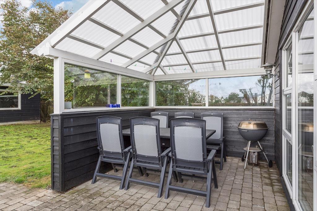 Draußen erwartet dich ein großes, geschütztes Grundstück mit viel Platz zum Spielen und Entspannen. Auf der Terrasse kannst du deinen Morgenkaffee genießen, während die Sonne aufgeht und die Vögel zwitschern. Am Abend ist die Terrasse der perfekte Ort für ein Grillabendessen unter freiem Himmel. Umgeben von grüner Natur lädt das Ferienhaus sowohl zu Ruhepausen als auch zu Aktivitäten ein – deine Hunde können frei herumlaufen, während die Kinder auf der Rasenfläche spielen.