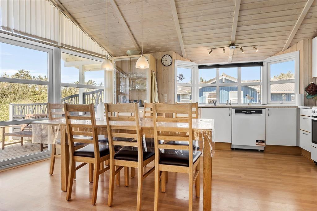 In Nr. Vorupør gelegen, ist dieses Ferienhaus ein idealer Ausgangspunkt, um sowohl Meer als auch Natur zu entdecken. Ein kurzer Spaziergang führt dich an die Nordsee, wo der Strand einmalige Erlebnisse bietet – von entspannten Spaziergängen im weichen Sand bis hin zu spannenden Aktivitäten wie Surfen. Vorupør ist bekannt für seine charmante Atmosphäre mit kleinen Läden, gemütlichen Cafés und hervorragenden Restaurants, die nach einem erlebnisreichen Tag zur Verwöhnung einladen. Der Nationalpark Thy liegt in der Nähe und ist das perfekte Ziel für Naturliebhaber, die die einzigartige Flora und Fauna der Region erkunden möchten.