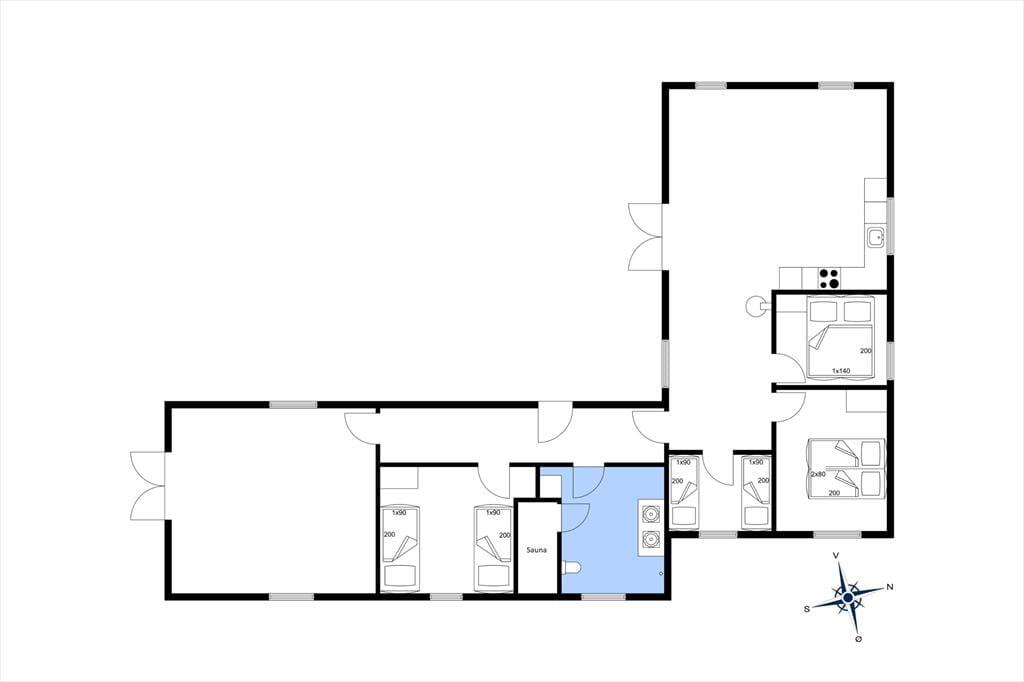 Betritt ein geräumiges und einladendes Ferienhaus, das Platz für bis zu acht Personen bietet. Das Haus verfügt über vier gemütliche Schlafzimmer, ideal für Familien oder Gruppen von Freunden. Das große Badezimmer hat direkten Zugang zur Sauna – der perfekte Ort, um nach einem erlebnisreichen Tag zu entspannen. Der Wohnbereich wird von einem Kamin beheizt, der eine warme und behagliche Atmosphäre schafft und zu gemütlichen Abenden mit Gesellschaftsspielen, guten Gesprächen oder einem spannenden Buch einlädt. Die offene Küche ist voll ausgestattet und macht das gemeinsame Kochen zum Vergnügen.