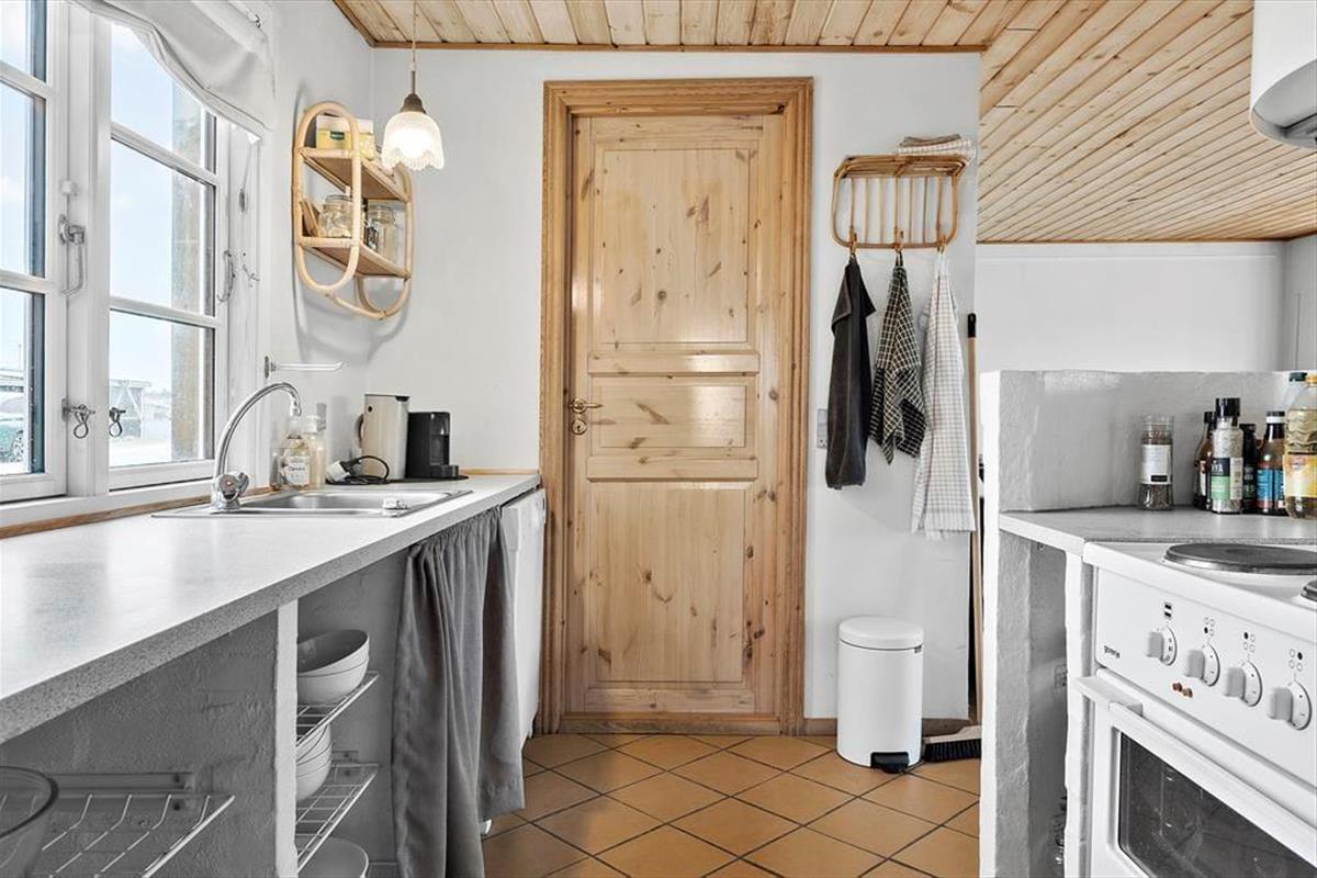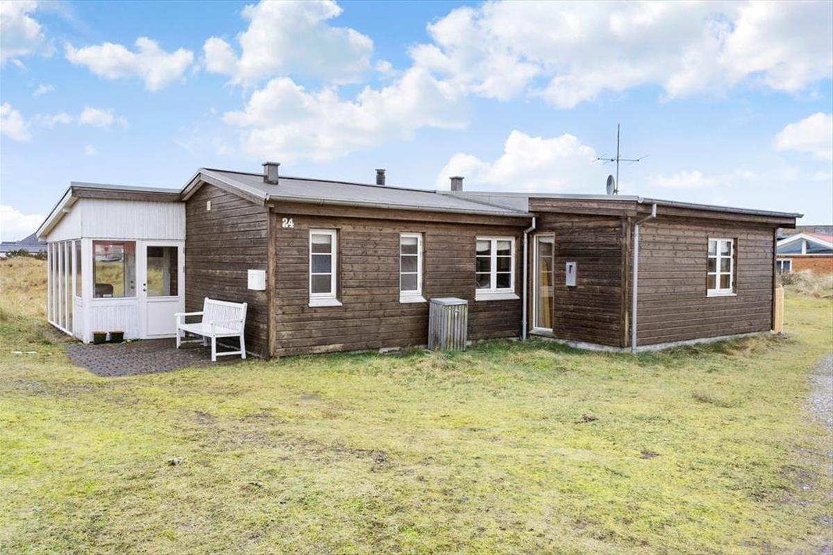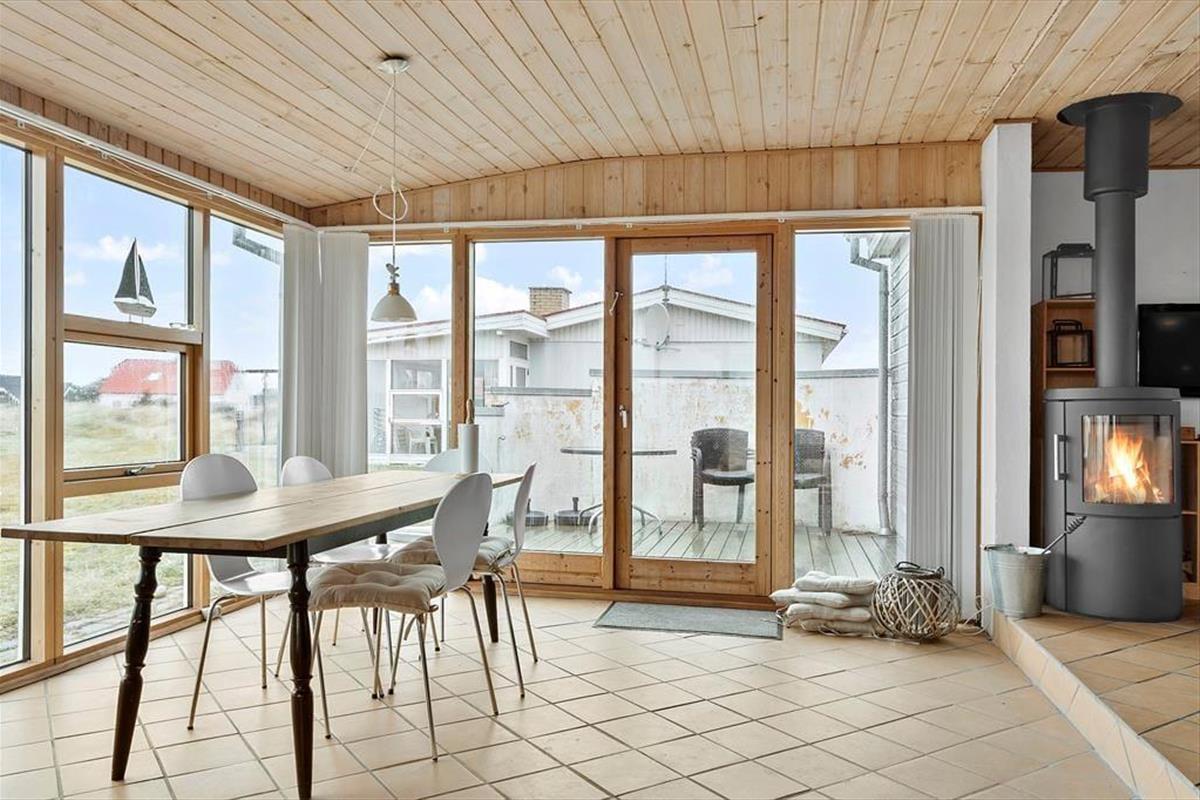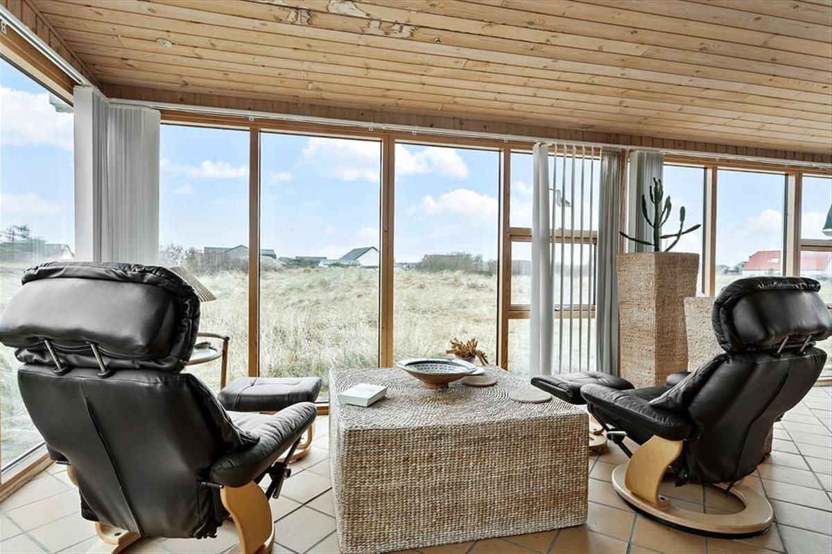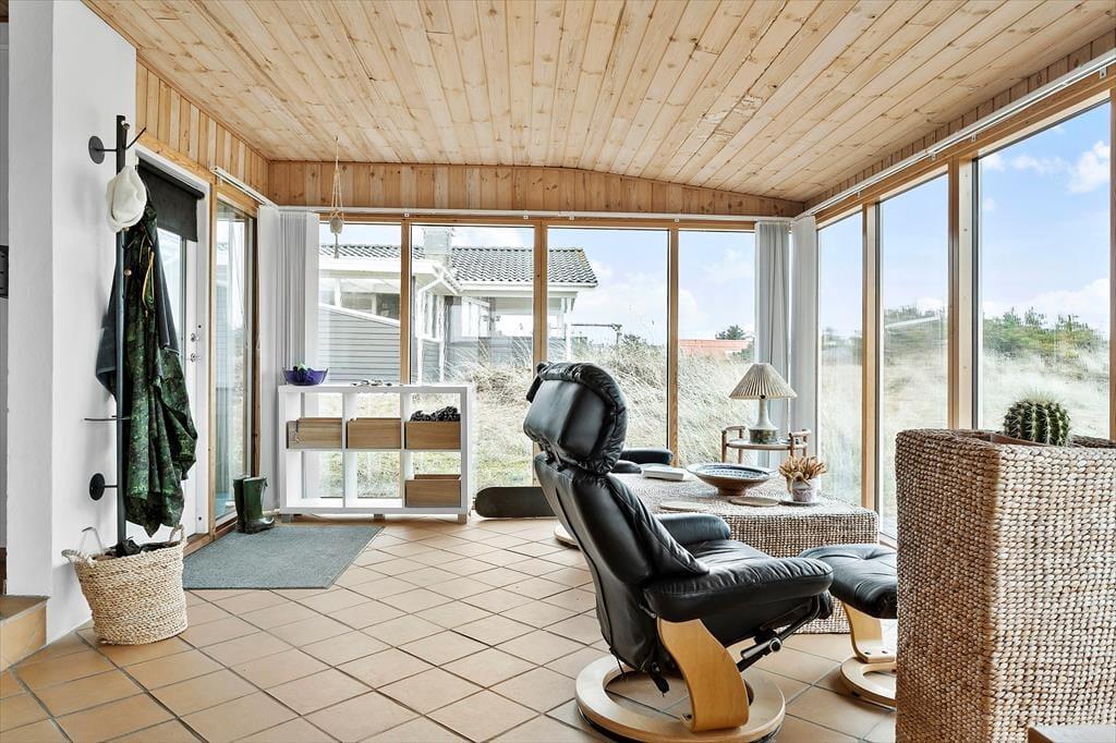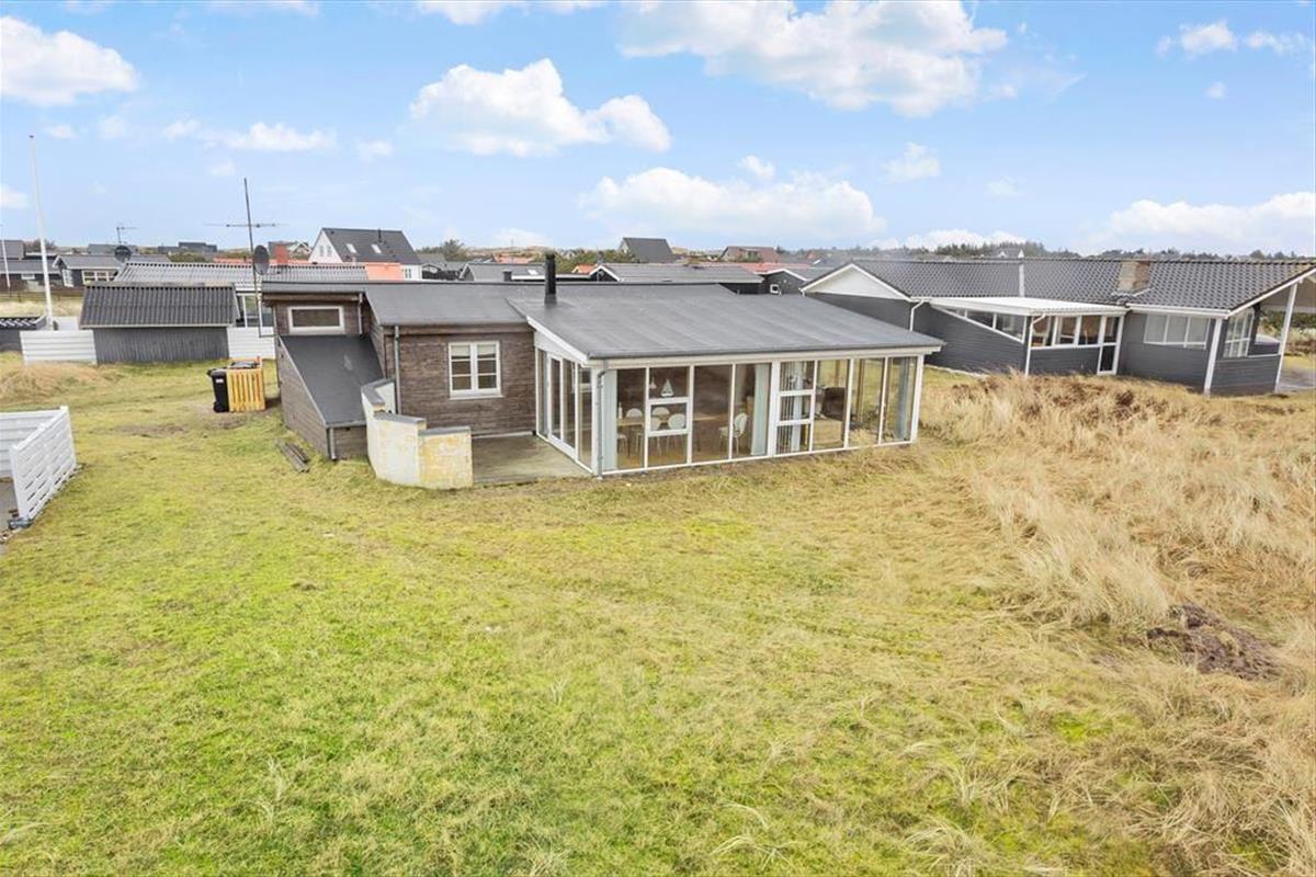 Draußen erwartet Sie eine schöne Terrasse mit Gartenmöbeln, Liegestühlen und einem Grill – perfekt für gemütliche Grillabende unter freiem Himmel. Obwohl das Haus zentral mit Nachbarn in der Nähe liegt, bietet das umgebende Naturgrundstück eine Oase der Ruhe. Vom Wohnzimmer und vom Wintergarten aus können Sie den Blick über das weite Naturgebiet schweifen lassen, das sich durch Vorupør erstreckt – vielleicht entdecken Sie ein Reh oder hören die Lerche singen.