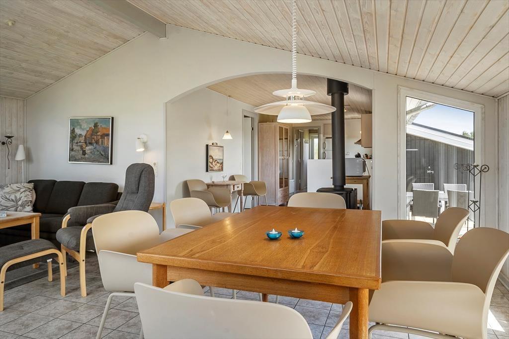 Dit gezellige vakantiehuis in Vorupør, Noord-Jutland, biedt een warme sfeer dankzij de houtkachel en het comfortabele interieur. De woning beschikt over moderne voorzieningen zoals een wasmachine en een vaatwasser, waardoor uw verblijf aangenaam en praktisch is.