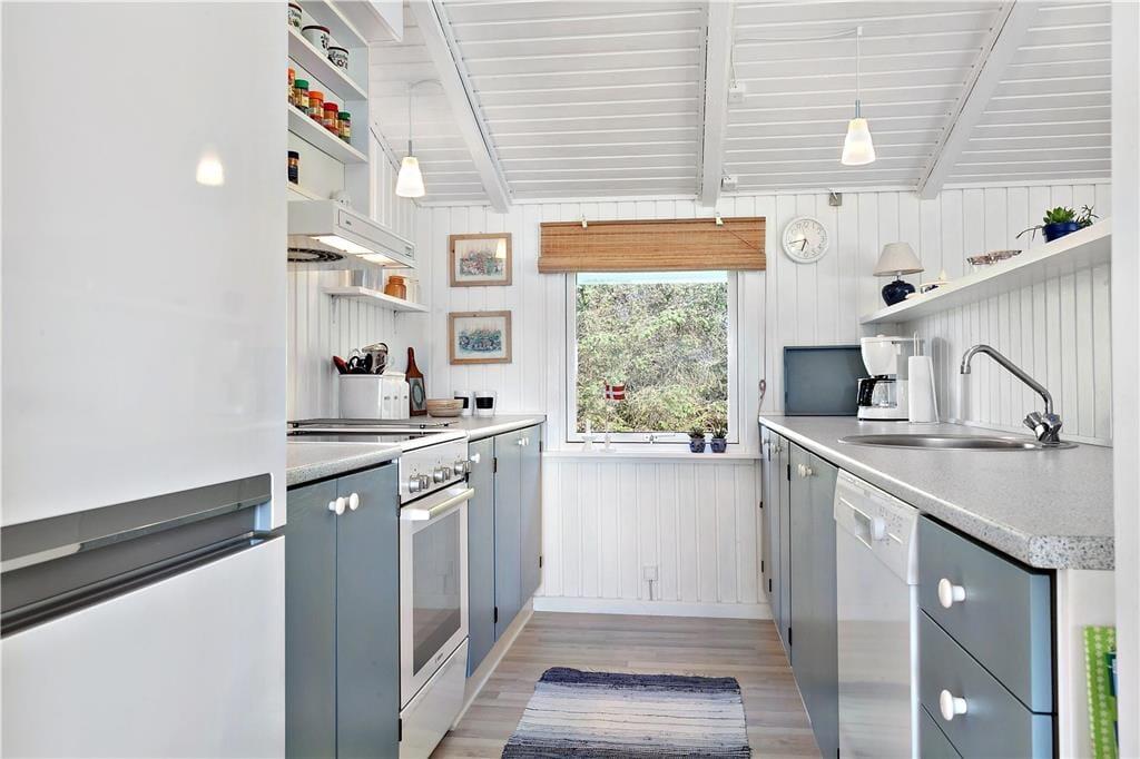 Vakantiehuis in Vorupør, Noord-Jutland, met plaats voor 5 volwassenen en 1 huisdieren. De woning heeft een gezellig interieur met o.a. een houtkachel, en beschikt daarnaast over een wasmachine en een vaatwasser.