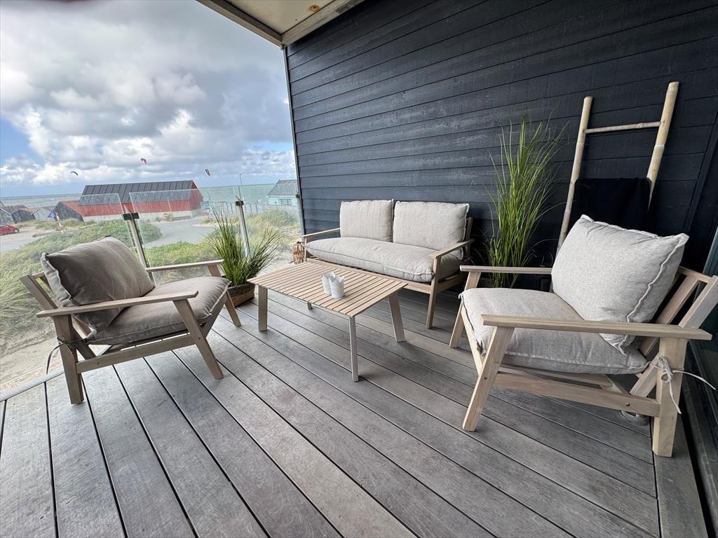 Draußen erwartet dich eine herrliche Terrasse, auf der du den Tag mit einer Tasse Kaffee beginnen kannst, während du den fantastischen Blick auf das Meer und die weiten Dünenlandschaften genießt. Der Strand ist nur wenige Schritte entfernt, sodass du jederzeit einen Spaziergang am Wasser unternehmen oder den Sand zwischen den Zehen spüren kannst. Das Ferienhaus verfügt zudem über einen schönen Außenbereich mit Essgelegenheit – ideal für lange Sommerabende mit Grillen und gemütlichen Gesprächen. Die Umgebung des Hauses lädt zur Entspannung ein, wo du zur Ruhe kommen und deinen Urlaub inmitten der Natur in vollen Zügen genießen kannst.