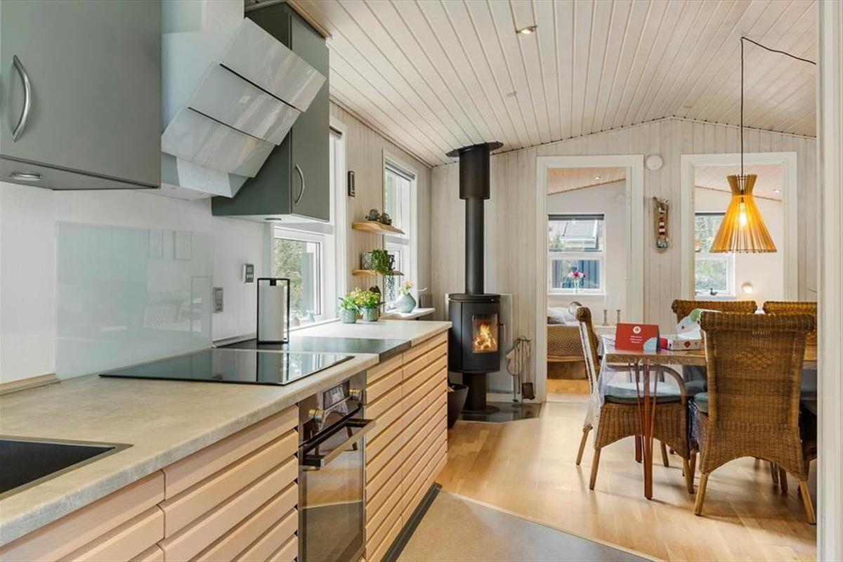 Tritt ein in dieses gemütliche und liebevoll eingerichtete Ferienhaus, in dem du dich sofort wie zu Hause fühlen wirst. Die Einrichtung strahlt klassische Ferienhaus-Atmosphäre aus, und der knisternde Kamin im Wohnzimmer sorgt an kühlen Tagen für wohlige Wärme und eine einladende Stimmung. Helle Farben und eine offene Raumaufteilung zwischen Wohnzimmer, Essbereich und Küche schaffen ein natürliches Zentrum für gemeinsame Mahlzeiten und entspannte Stunden. Egal, ob du deinen Morgenkaffee am Esstisch genießt oder dich mit einem guten Buch auf das Sofa zurückziehst – hier findest du Ruhe und Geborgenheit.