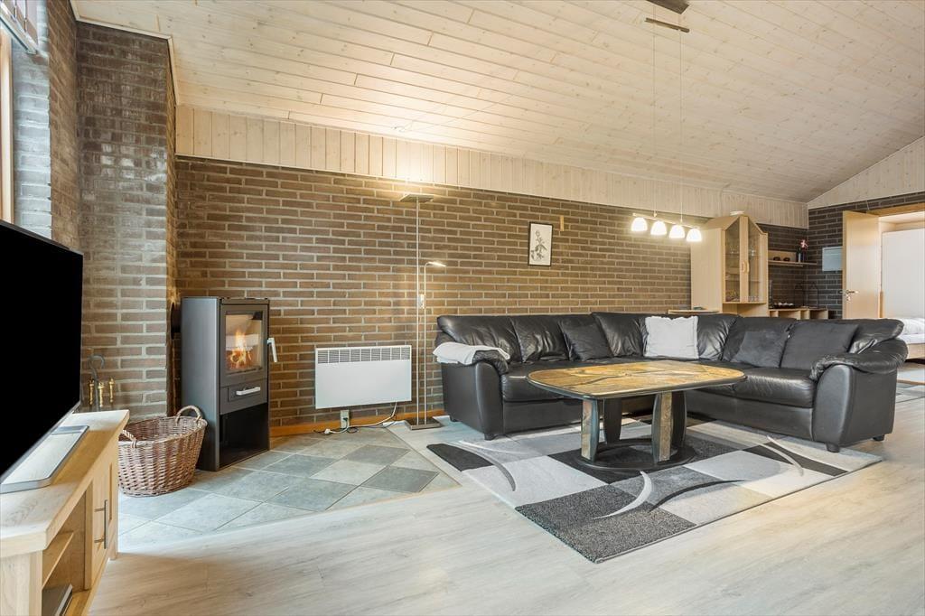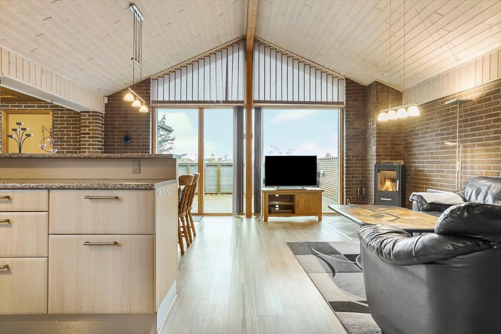 Das Ferienhaus in der Kuttervej 8 versprüht klassische Ferienhausatmosphäre mit einer einladenden und warmen Stimmung. Wenn du das Haus betrittst, erwartet dich ein heller und offener Wohnbereich, in dem Wohnraum, Essbereich und Küche harmonisch ineinander übergehen. In der Mitte des Raumes sorgt der Kaminofen für eine gemütliche Stimmung und wohlige Wärme – perfekt für einen kühlen Abend nach einem Tag am Strand. Mit Platz für sechs Personen eignet sich das Haus ideal für Familien oder Gruppen von Freunden, die ihren Urlaub gemeinsam in behaglicher Umgebung verbringen möchten. Große Fenster lassen viel Tageslicht herein und schaffen eine schöne Verbindung zur Natur, sodass du die besondere Atmosphäre von Vorupør auch drinnen spüren kannst.