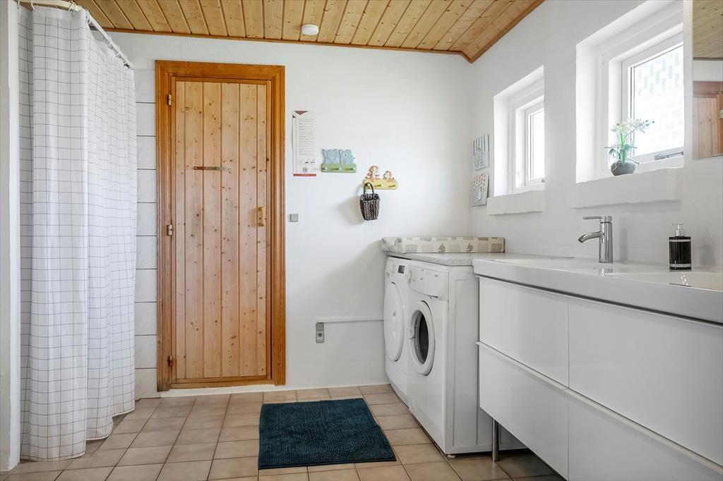 Sobald du dieses Ferienhaus betrittst, spürst du die warme und einladende Atmosphäre, die das Zuhause ausmacht. Das Wohnzimmer ist das Herz des Hauses und verfügt über einen gemütlichen Kaminofen, der eine wohlige Wärme verbreitet und den perfekten Rahmen für entspannte Abende schafft. Stell dir vor, wie das Feuer im Kamin knistert, während du es dir mit einem guten Buch auf dem Sofa gemütlich machst oder einen Spieleabend mit der Familie genießt. Das Haus bietet Platz für bis zu acht Personen und eignet sich daher ideal für größere Familien oder Gruppen von Freunden, die das authentische dänische Ferienhausgefühl erleben möchten. Nach einem erlebnisreichen Tag in der Natur kannst du dich in der Sauna entspannen, wo die Wärme Verspannungen löst und für ein tiefes Wohlbefinden sorgt.