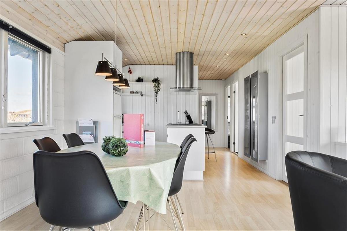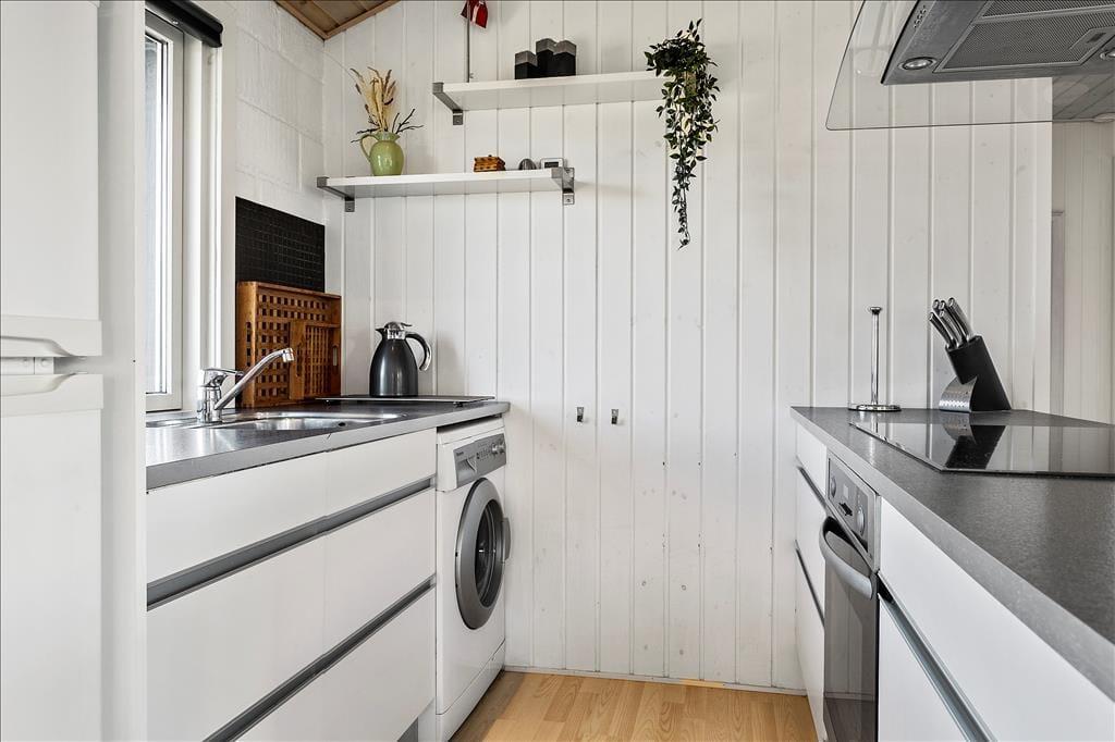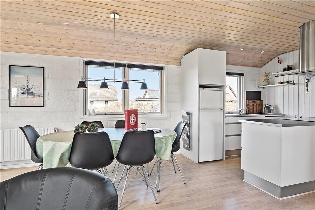 Die offene und funktionale Küche ist direkt mit dem Wohnbereich verbunden, sodass die Zubereitung von Mahlzeiten zu einem gemeinschaftlichen Erlebnis wird. Die Mahlzeiten können am Esstisch genossen werden, wo das Licht durch die großen Fenster strömt und den Innen- und Außenbereich auf wunderbare Weise verbindet. Mit Platz für bis zu sechs Personen bietet dieses Ferienhaus ideale Voraussetzungen für einen unvergesslichen Urlaub mit Familie oder Freunden – in einer Atmosphäre, die Charme und Wohlbehagen ausstrahlt.