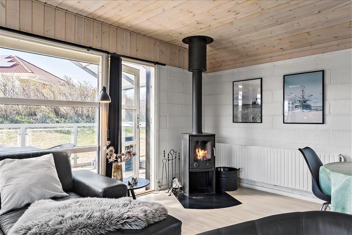 Beim Betreten des Ferienhauses in der Krebsvej 4 wirst du von einer warmen und gemütlichen Atmosphäre empfangen. Das geschmackvoll eingerichtete Wohnzimmer lädt mit seinen bequemen Möbeln zum Verweilen ein. Der Holzofen verbreitet wohlige Wärme und sorgt an kühlen Tagen für eine besonders heimelige Stimmung. Stell dir vor, wie du dich mit einem guten Buch auf dem Sofa entspannst, während das Feuer im Ofen knistert – oder wie du mit der Familie einen geselligen Spieleabend verbringst und dabei den Tag bei einer heißen Tasse Kakao Revue passieren lässt.