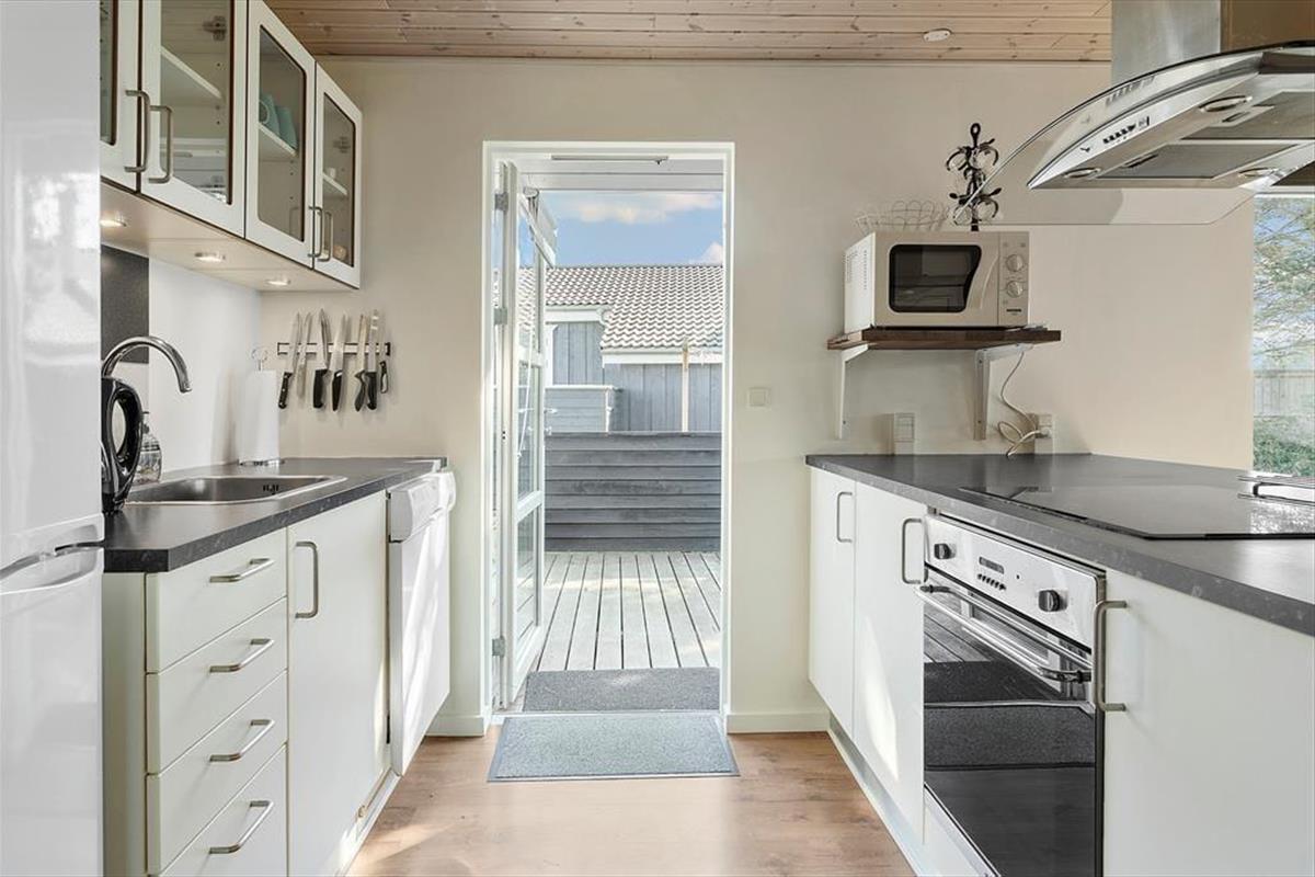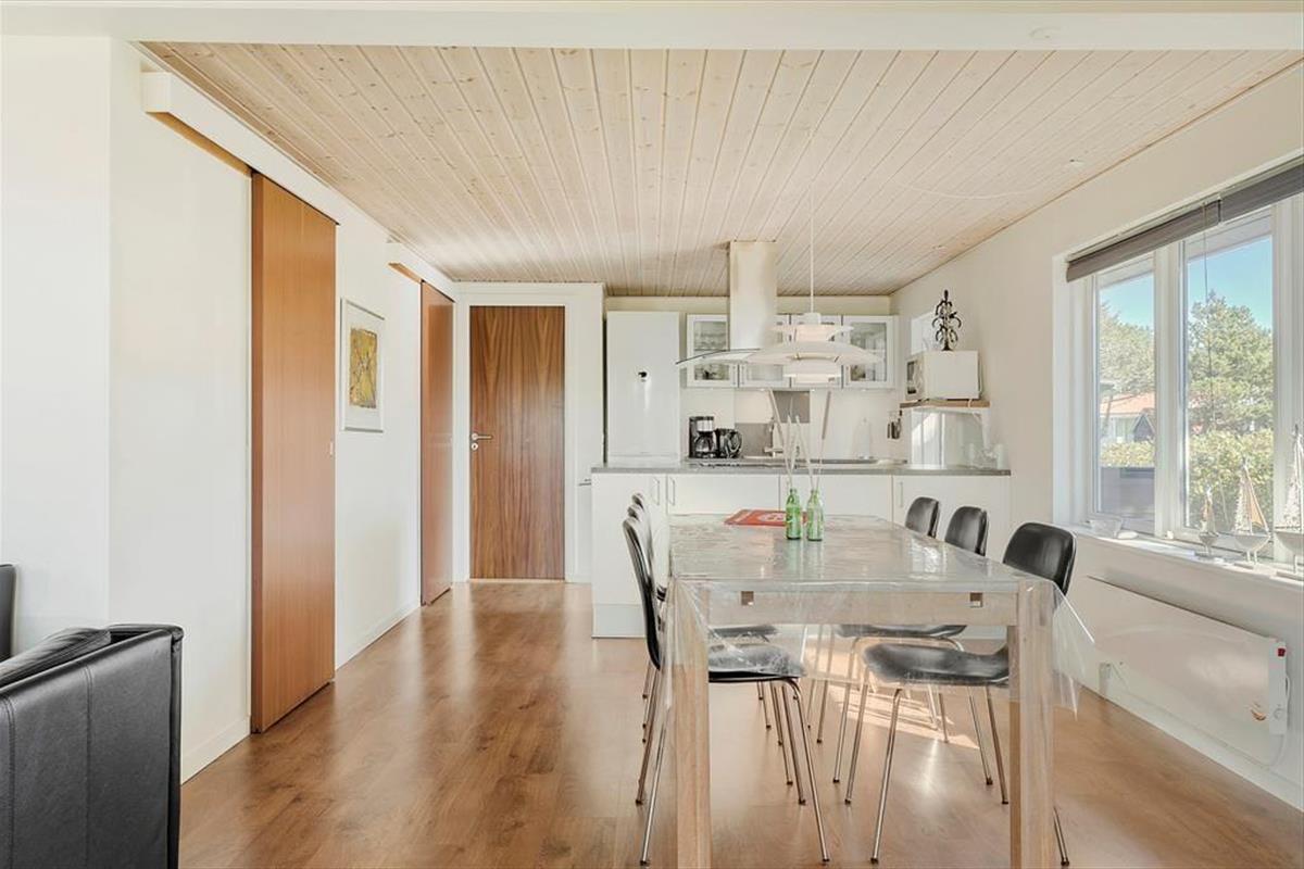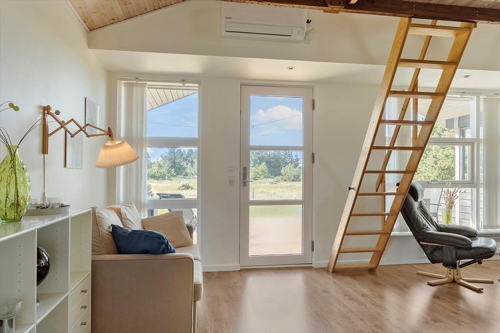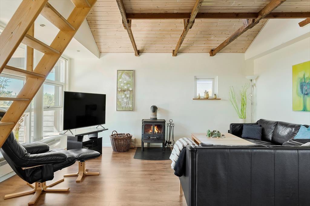 Das Ferienhaus strahlt echte dänische Gemütlichkeit aus – mit einer warmen Atmosphäre und einem Kaminofen, der an kühlen Abenden zum natürlichen Mittelpunkt wird. Wenn der Wind draußen durch das Dünengras weht, kannst du das Feuer entfachen, die Flammen hinter der Scheibe tanzen sehen und die wohlige Wärme genießen, während du ein gutes Buch liest oder mit der Familie einen Spieleabend verbringst. Das Wohnzimmer ist geräumig und hell, und die offene Raumgestaltung macht es einfach, zusammen zu sein – egal, ob du in der Küche das Abendessen vorbereitest oder dich auf dem Sofa entspannst. Hier gibt es Platz für bis zu sechs Personen, sodass du mit der ganzen Familie oder guten Freunden einen wunderbaren Urlaub verbringen kannst.