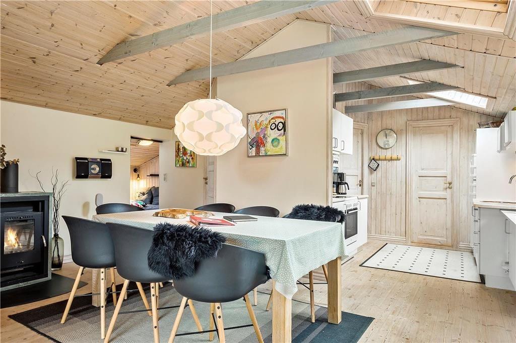 Sobald du dieses Ferienhaus betrittst, wirst du von einer warmen und einladenden Atmosphäre empfangen. Die hellen Räume und die gemütliche Einrichtung schaffen den perfekten Rahmen für deinen Urlaub – egal, ob du mit der Familie oder guten Freunden hier bist. Das Herz des Hauses ist das Wohnzimmer, wo der Kamin an kühlen Tagen wohlige Wärme und Behaglichkeit verbreitet. Stell dir vor, wie du dich mit einem guten Buch einkuschelst, während das Feuer knistert, oder wie du mit deinen Liebsten einen geselligen Spieleabend verbringst. Die offene und funktionale Küche lädt dazu ein, gemeinsam zu kochen und das Beisammensein zu genießen. Nach einem erlebnisreichen Tag kannst du dich in eines der komfortablen Schlafzimmer zurückziehen und die Ruhe auf dich wirken lassen.