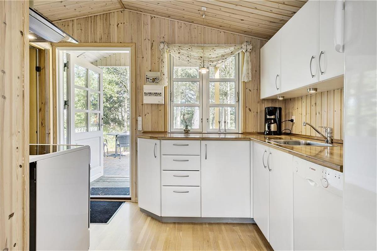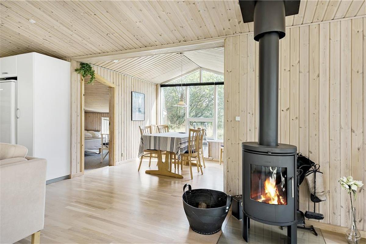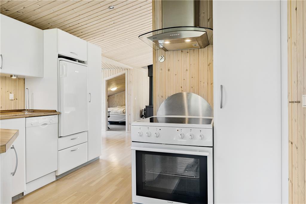 Beim Betreten des Ferienhauses wirst du von einer warmen und einladenden Atmosphäre empfangen. Das Wohnzimmer ist der natürliche Treffpunkt des Hauses, wo du dich mit einem guten Buch auf das Sofa kuscheln oder mit der Familie Brettspiele spielen kannst. An kühleren Tagen sorgt der Kaminofen für eine angenehme Wärme und zusätzliche Gemütlichkeit, während das Feuer leise knistert. Die Küche ist funktional eingerichtet und mit allem ausgestattet, was du brauchst, um köstliche Mahlzeiten für die ganze Familie zuzubereiten. Ob ein entspanntes Frühstück oder ein Abendessen mit frisch gefangenem Fisch aus dem Meer – hier sind die besten Voraussetzungen für kulinarische Genüsse geschaffen.