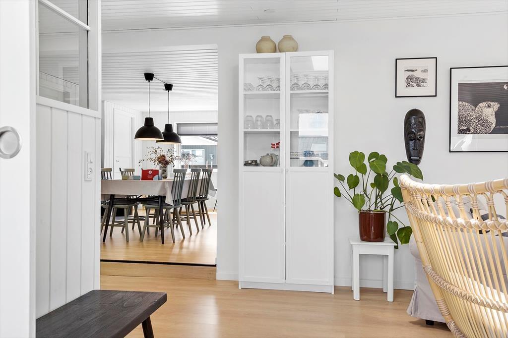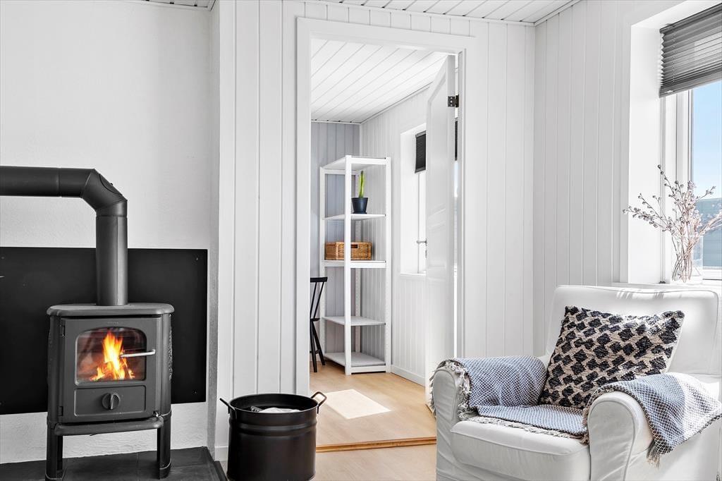 Keine Sorge, du wirst dich hier in der Nordsøvej 36 sofort wie zu Hause fühlen. Schon beim Betreten des hellen und einladenden Wohnzimmers umfängt dich eine warme Atmosphäre, in der das Knistern des Holzofens die perfekte Urlaubsstimmung schafft. Hier kannst du dich mit einem guten Buch aufs Sofa zurückziehen oder Familie und Freunde zu gemütlichen Abenden versammeln, bei denen ihr über alte Urlaubserinnerungen lacht und neue Abenteuer plant. Die Küche ist offen mit dem Wohnbereich verbunden, sodass du den gemeinschaftlichen Zusammenhalt nie verpasst, selbst wenn du das Essen vorbereitest. Das schlichte, aber stilvolle Interieur lädt zu Ruhe und Erholung ein, während große Fenster das Tageslicht hereinlassen und den Blick auf die wechselnden Farben der umliegenden Natur freigeben.