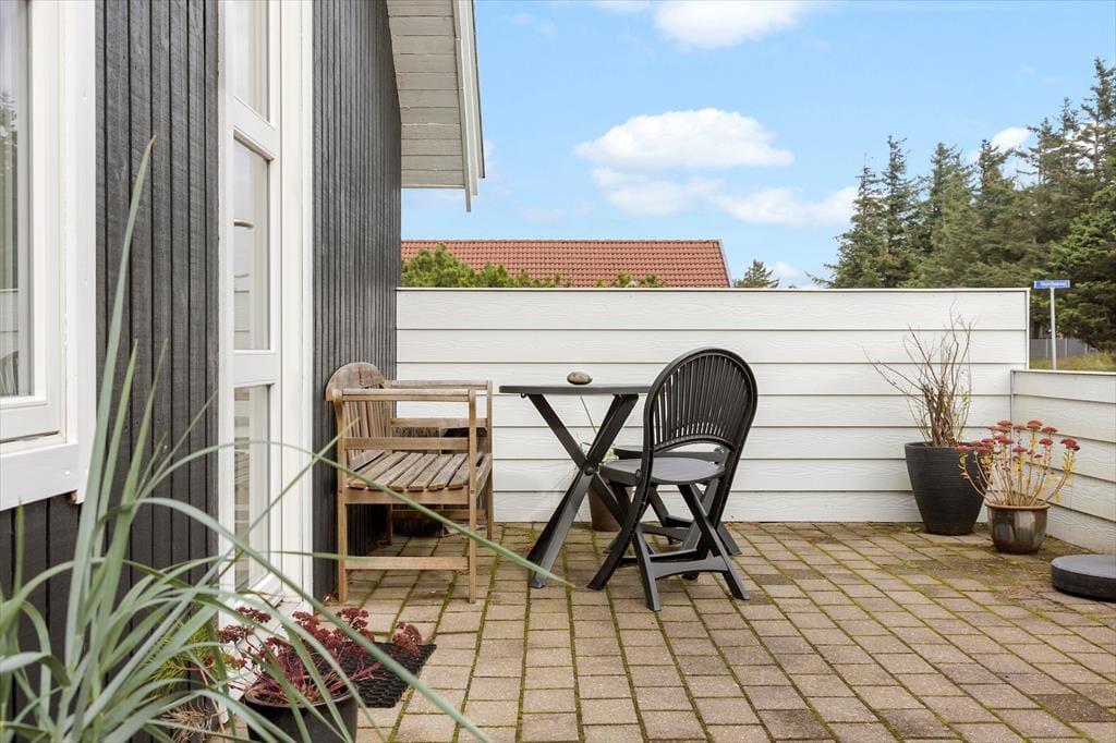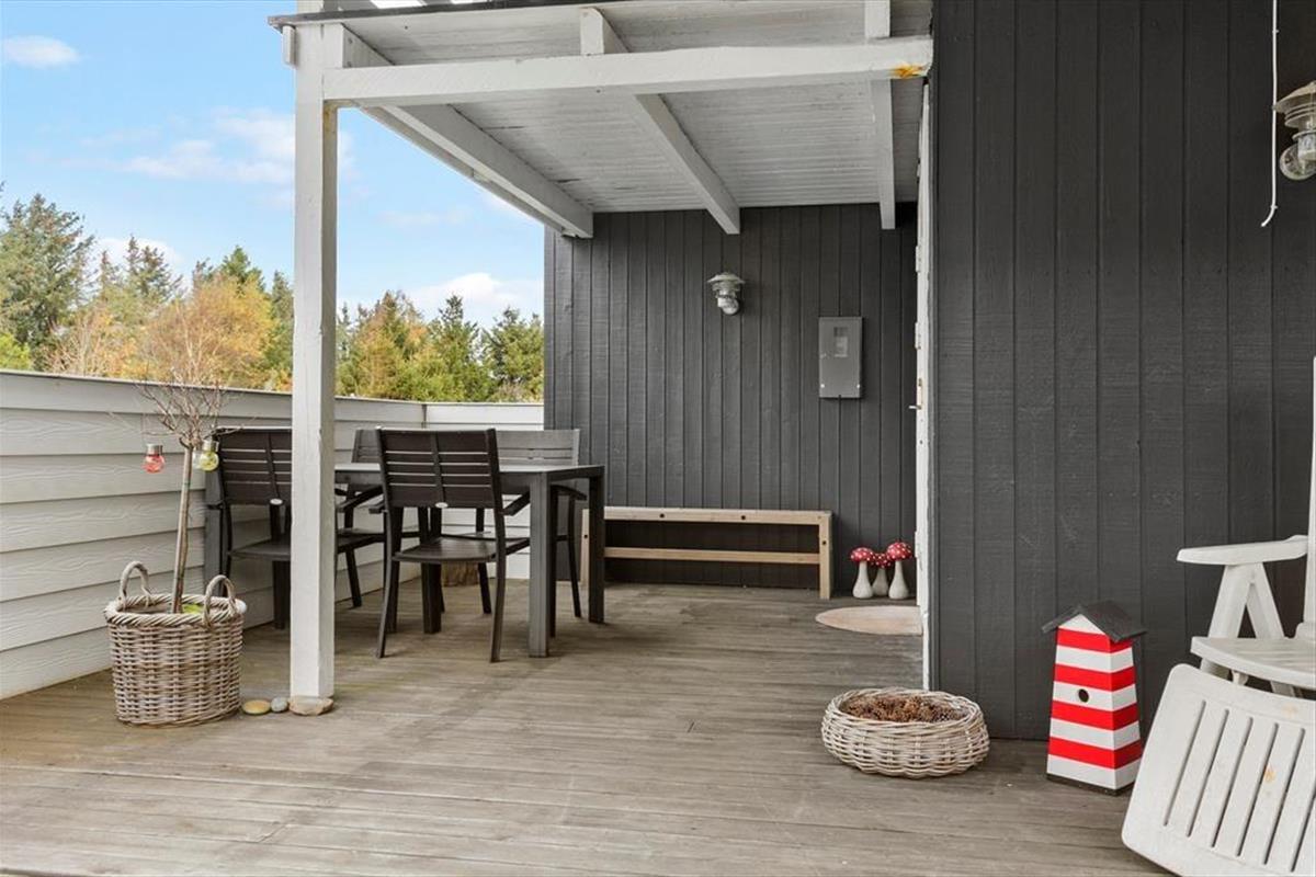 Wunderbare Terrasse, die komplett geschlossen und teilweise überdacht ist. Gute Gartenmöbel, Liegestühle, Grill und Sonnenschirm sind vorhanden. Kurze Entfernung zur Mole, Meerwasserbecken und dem gemütlichen Umfeld am Landungsplatz in Vorupør.