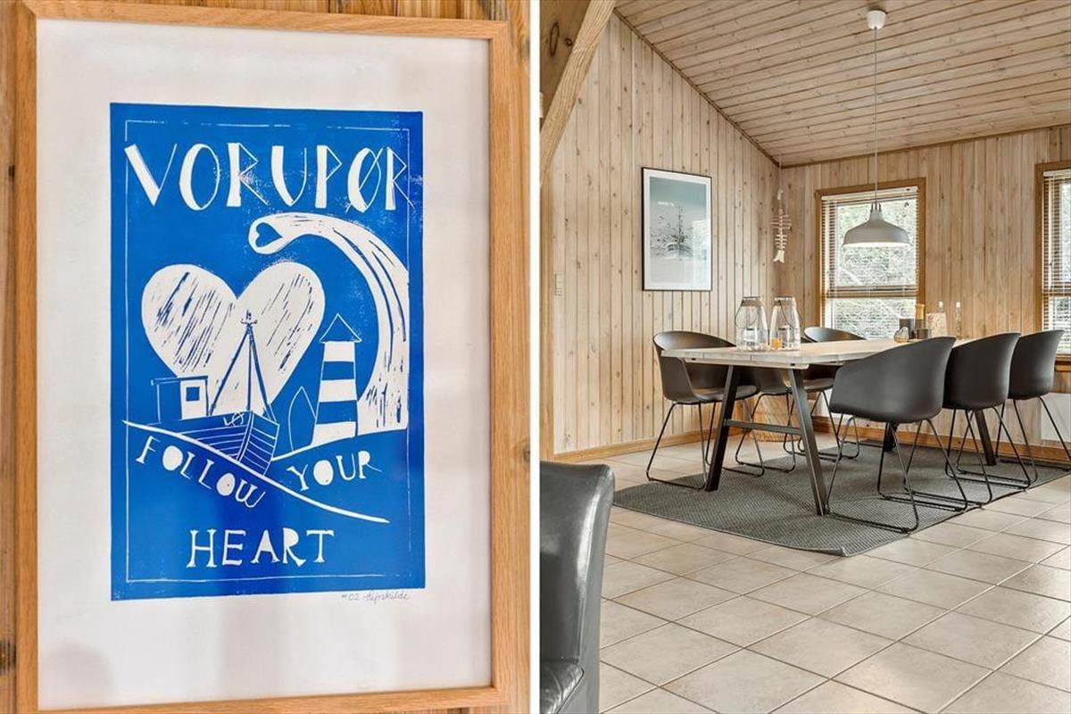 Das Ferienhaus liegt im Herzen von Nr. Vorupør, das vom Nationalpark Thy von allen Seiten umgeben ist, außer im Westen, weil die mächtige Nordsee der nächste Nachbar ist. Hier wohnen Sie ruhig und friedlich und in der unmittelbaren Nähe von viel Natur, aber gleichzeitig ist auch der charmante Urlaubsort mit ganzjährig geöffneten Einkaufsmöglichkeiten und Restaurants. Eine hervorragende Empfehlung für einen Familienurlaub in allen Jahreszeiten!