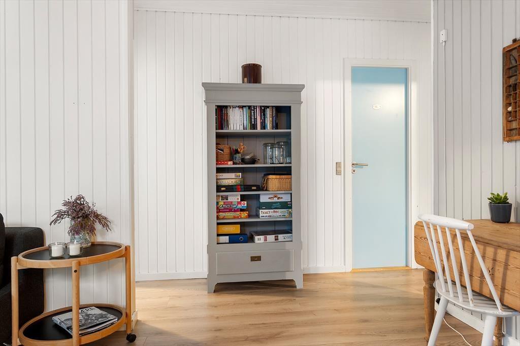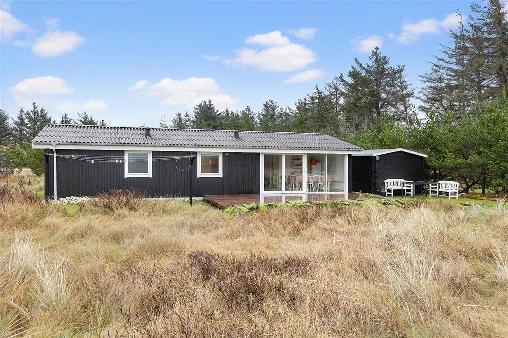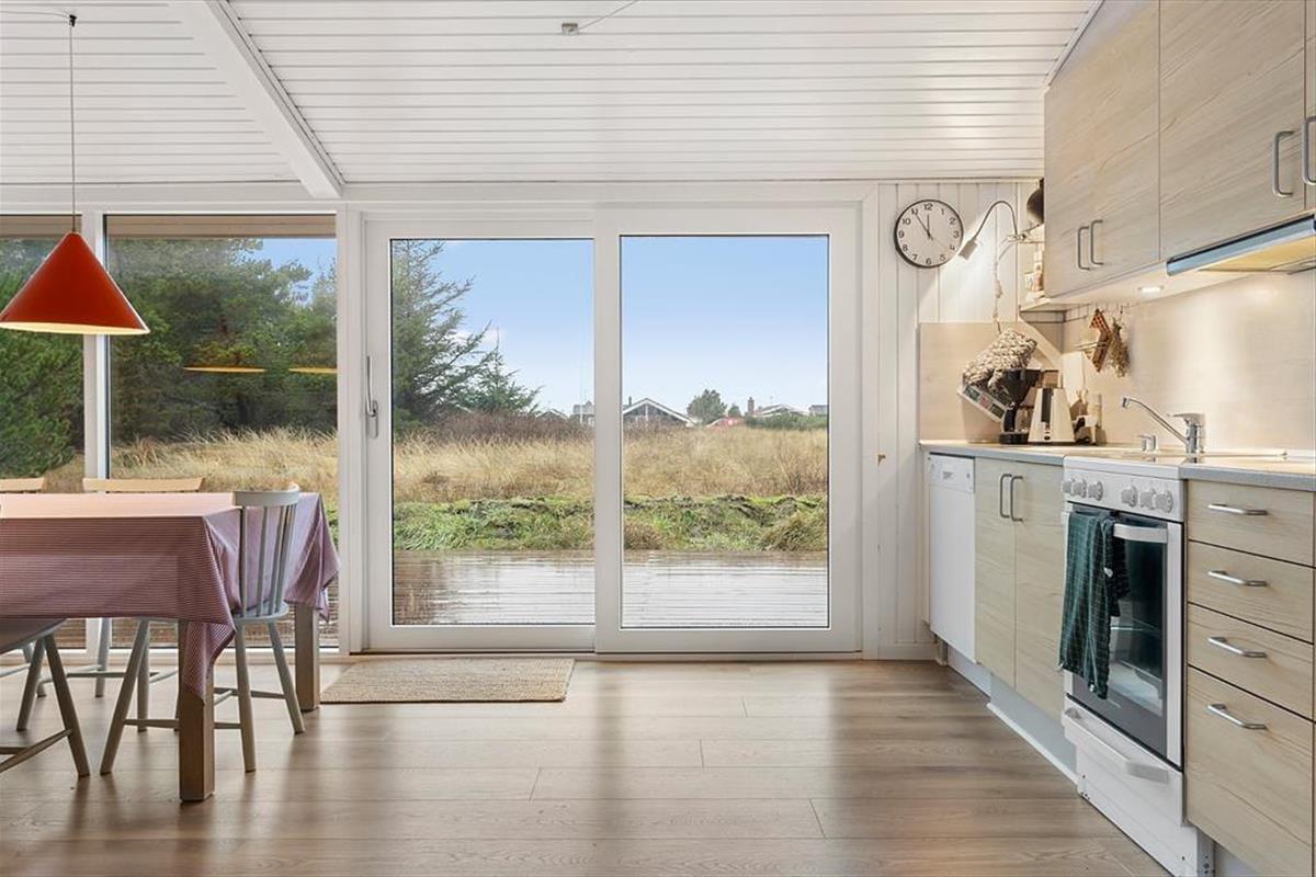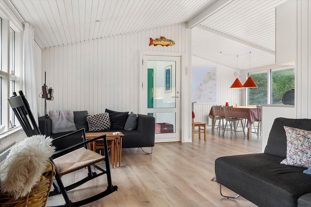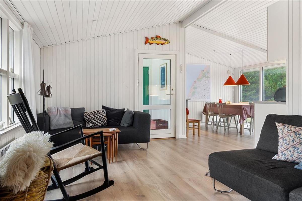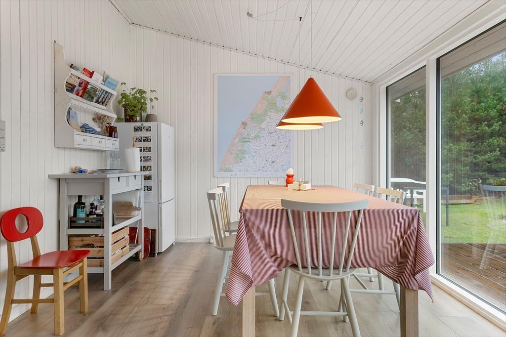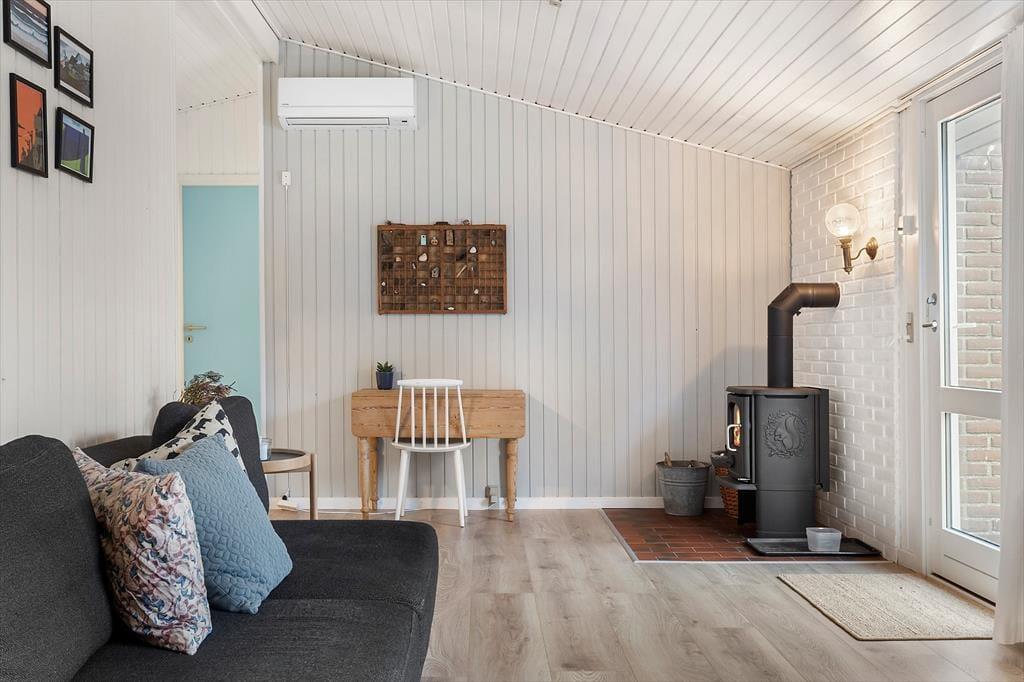 Vakantiehuis in Vorupør, Noord-Jutland, met plaats voor 5 volwassenen en 2 huisdieren. De woning heeft een gezellig interieur met o.a. een houtkachel, en beschikt daarnaast over een wasmachine en een vaatwasser.