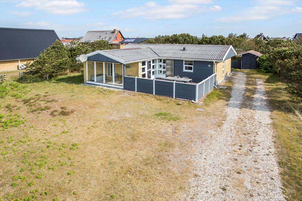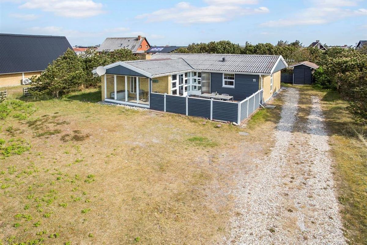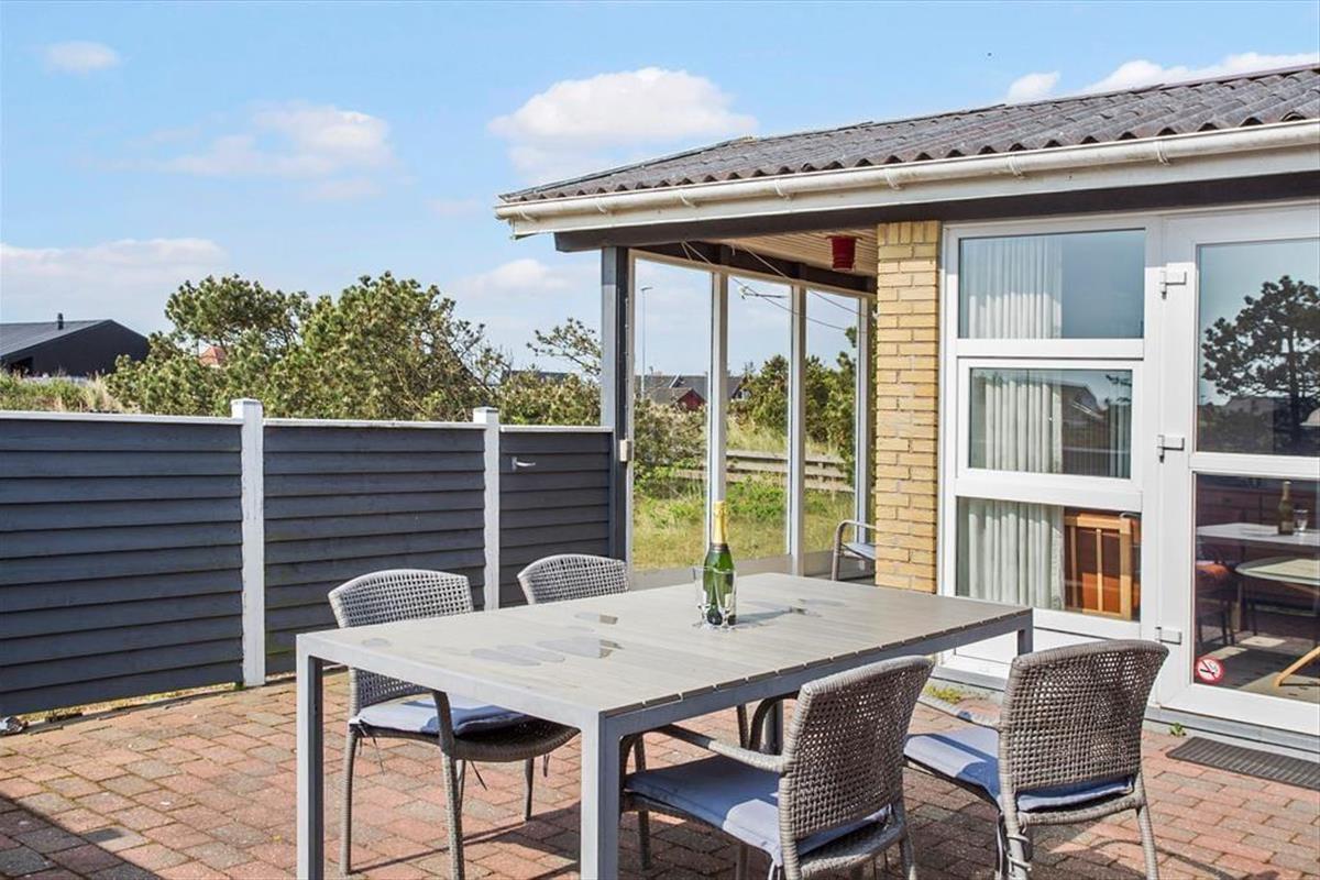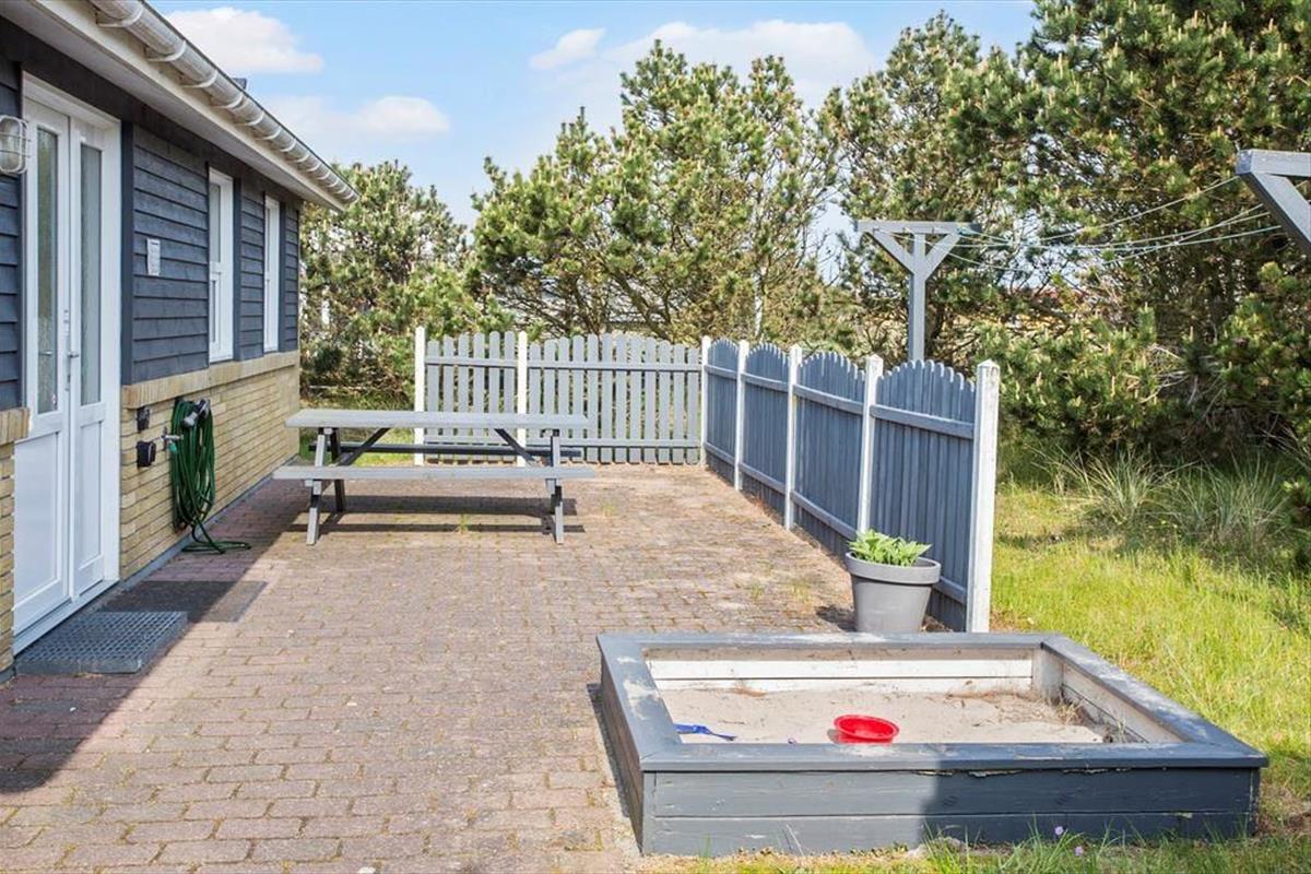 Draußen öffnet sich ein intimer und abgeschlossener Terrassenbereich, in dem du deine Gedanken frei schweifen lassen und deine Sinne von der herrlichen Natur verzaubern kannst. Hier gibt es genügend Platz, um den Morgenkaffee in aller Ruhe zu genießen, während du die sanften Sonnenstrahlen spürst und den fernen Geräuschen der Natur lauschst. Die Terrasse lädt zu geselligen Grillabenden und lebhaften Gesprächen mit Familie und Freunden ein, während du die angenehme Brise von der Nordsee – Vesterhavet – wahrnimmst. Dieser sichere und private Außenbereich bietet zudem die Möglichkeit, mit den Kindern zu spielen oder in aller Ruhe mit einem guten Buch zu entspannen – und dabei von der besonderen Atmosphäre verführt zu werden, die nur in einem authentischen Ferienhaus in Thy zu finden ist.