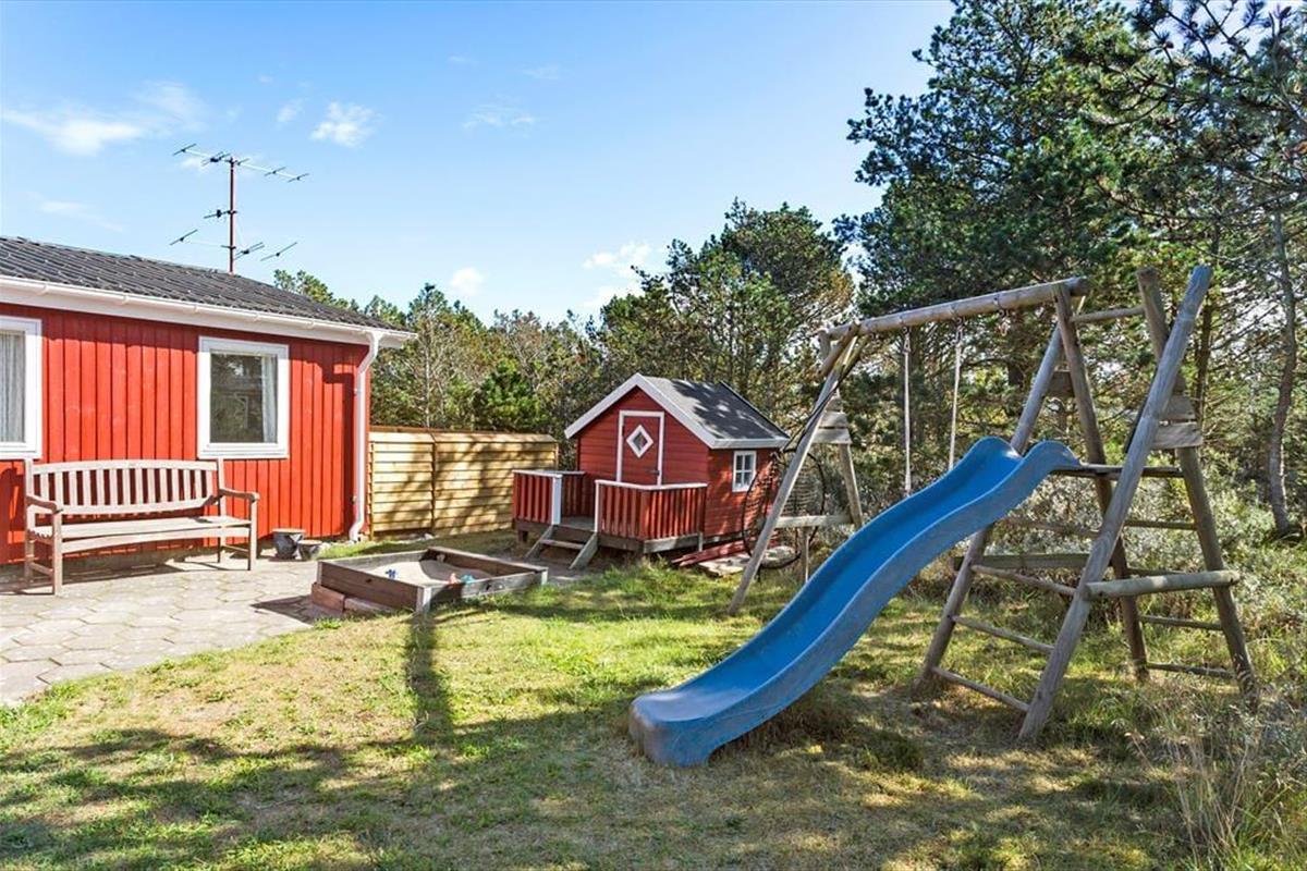 Draußen erwartet Sie ein wunderschönes Naturgrundstück, das zu zahlreichen Aktivitäten im Freien und erholsamen Stunden in der Natur einlädt. Hier können Sie das weiche Gras unter Ihren Füßen spüren und Ihre Sinne von den frischen Düften der umliegenden Natur beleben lassen. Das großzügige Grundstück ist ideal zum Spielen mit den Kindern oder für einen ruhigen Moment mit einer Tasse Kaffee, während Sie Ihren Gedanken freien Lauf lassen. Mit der Möglichkeit, alle Haustiere frei und sicher herumlaufen zu lassen, schafft dieser Ort einen natürlichen Rahmen für den perfekten Urlaub, in dem Spiel und Entspannung Hand in Hand gehen. Stellen Sie sich die hellen Sommerabende vor, an denen der klare Himmel und die Sterne über Vorupør die natürliche Kulisse für lange Gespräche und traumhafte Momente im Freien bilden.