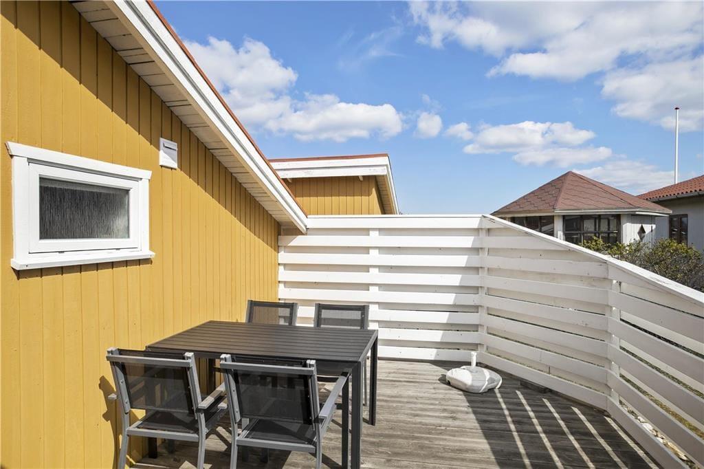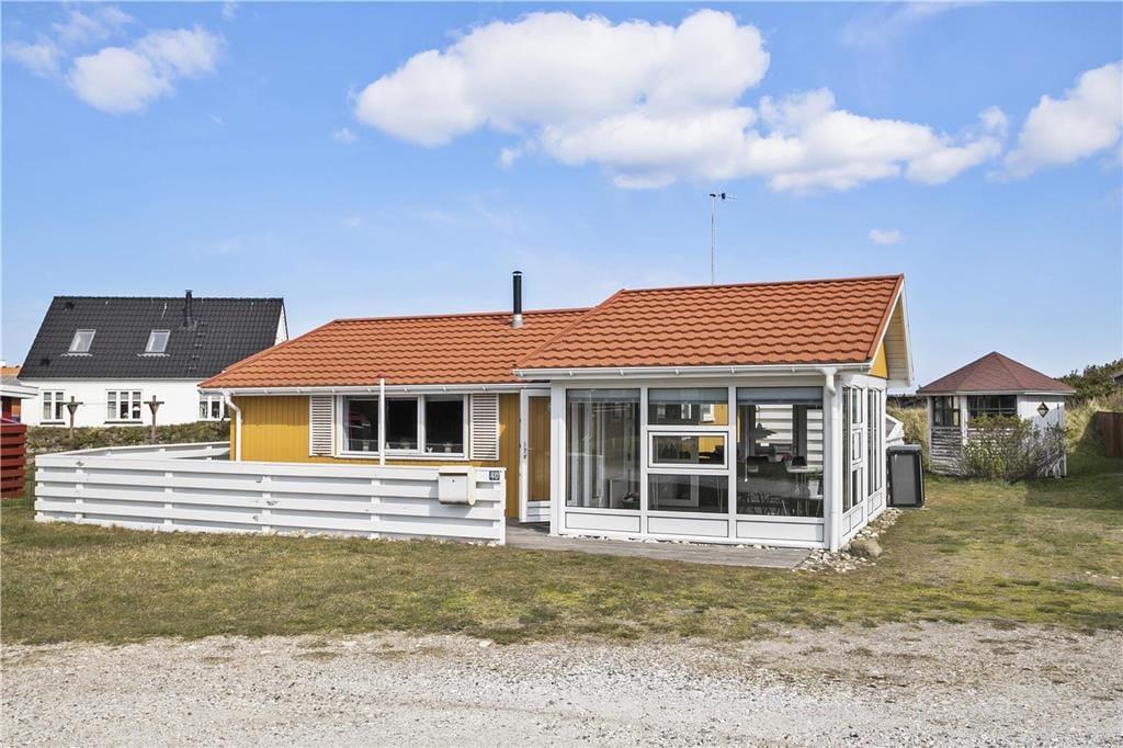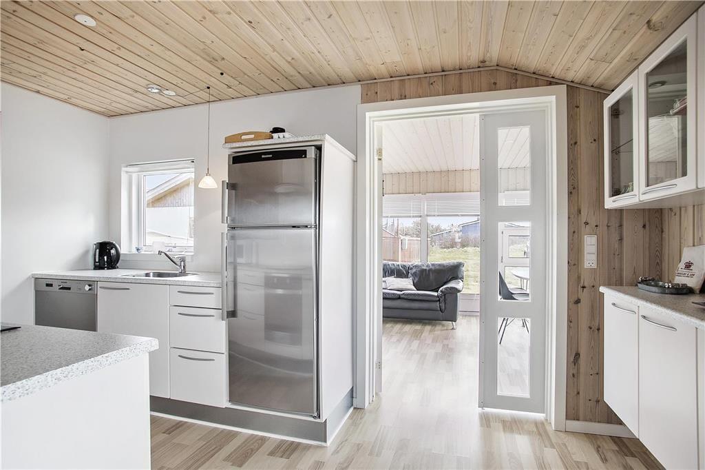 Draußen erwartet dich eine abgeschirmte Terrasse, die eine private Oase inmitten der malerischen Landschaft rund um Vorupør schafft. Hier kannst du dich zurückziehen von dem Alltagslärm und deinen Sinnen freien Lauf lassen – stell dir das Geräusch eines sanften Windes, den Duft frischer Meeresluft und das Gefühl der warmen Sonne auf deiner Haut vor. Die Terrasse ist ideal für gemütliche Stunden, sei es mit einer Tasse Kaffee in den frühen Morgenstunden oder mit einem Glas Wein, während die Sonne langsam hinter dem Horizont verschwindet. Der gut gestaltete Außenbereich bietet Raum für Spiel, Entspannung und Geselligkeit mit deinen Lieben und vereint Privatsphäre mit der Möglichkeit, die weiten Umgebungen, die Thy auszeichnen, zu genießen. Es ist ein perfekter Außenbereich, in dem jedes Detail dazu beiträgt, das Gefühl zu verstärken, im Urlaub zu sein und das Leben in vollen Zügen zu genießen.