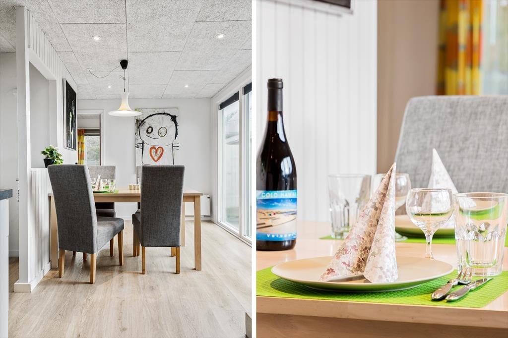 Mit einer Südterrasse direkt vor der Tür kannst du die gemeinsame Zeit ganz leicht nach draußen verlegen. Hier kannst du die erste Tasse Kaffee am Morgen in der Sonne genießen, während du die frische Meeresluft einatmest und den Vögeln lauscht, die den Tag begrüßen. Im Laufe des Tages kann die Terrasse zum Mittelpunkt für lange Mittagessen und spannende Grillabende werden, bei denen der Duft frisch gegrillter Speisen in einer sanften Brise vom Vesterhav verweht wird. Für die Kinder gibt es auf dem umliegenden Naturgrundstück viel Platz zum Spielen, während die Erwachsenen in einem Liegestuhl entspannen oder sich für eine Runde Kartenspiel am Gartentisch versammeln. Und falls das Wetter einmal nicht mitspielen sollte, lässt es sich jederzeit in die Wärme des Kaminofens zurückziehen, um die Gemütlichkeit fortzusetzen.