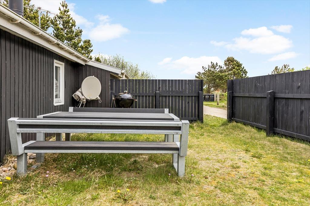 Draußen öffnet der kleine, aber charmante Garten des Ferienhauses eine Welt voller Entspannung und Naturerlebnisse. Hier gibt es Raum, lange, ruhige Stunden unter freiem Himmel zu genießen, während die frische Meeresluft und die sanften Klänge des Vogelgesangs aus der Umgebung ein Gefühl von Frieden und Vertiefung vermitteln. Das gepflegte Grundstück lädt sowohl zum Spielen als auch zum Entspannen ein – verbring beispielsweise einen behaglichen Nachmittag mit einem guten Buch oder genieße ein Mahl im Freien, während die Sonne scheint. Es fällt leicht, die Gedanken schweifen zu lassen, während du mit deinen vierbeinigen Freunden einen Spaziergang durch den Garten machst, denn hier sind alle Haustiere herzlich willkommen. Die schlichte, aber funktionale Außeneinrichtung ermöglicht es dir, die vielen Facetten der Natur in ihrer ganzen nahen und authentischen Pracht zu erleben.