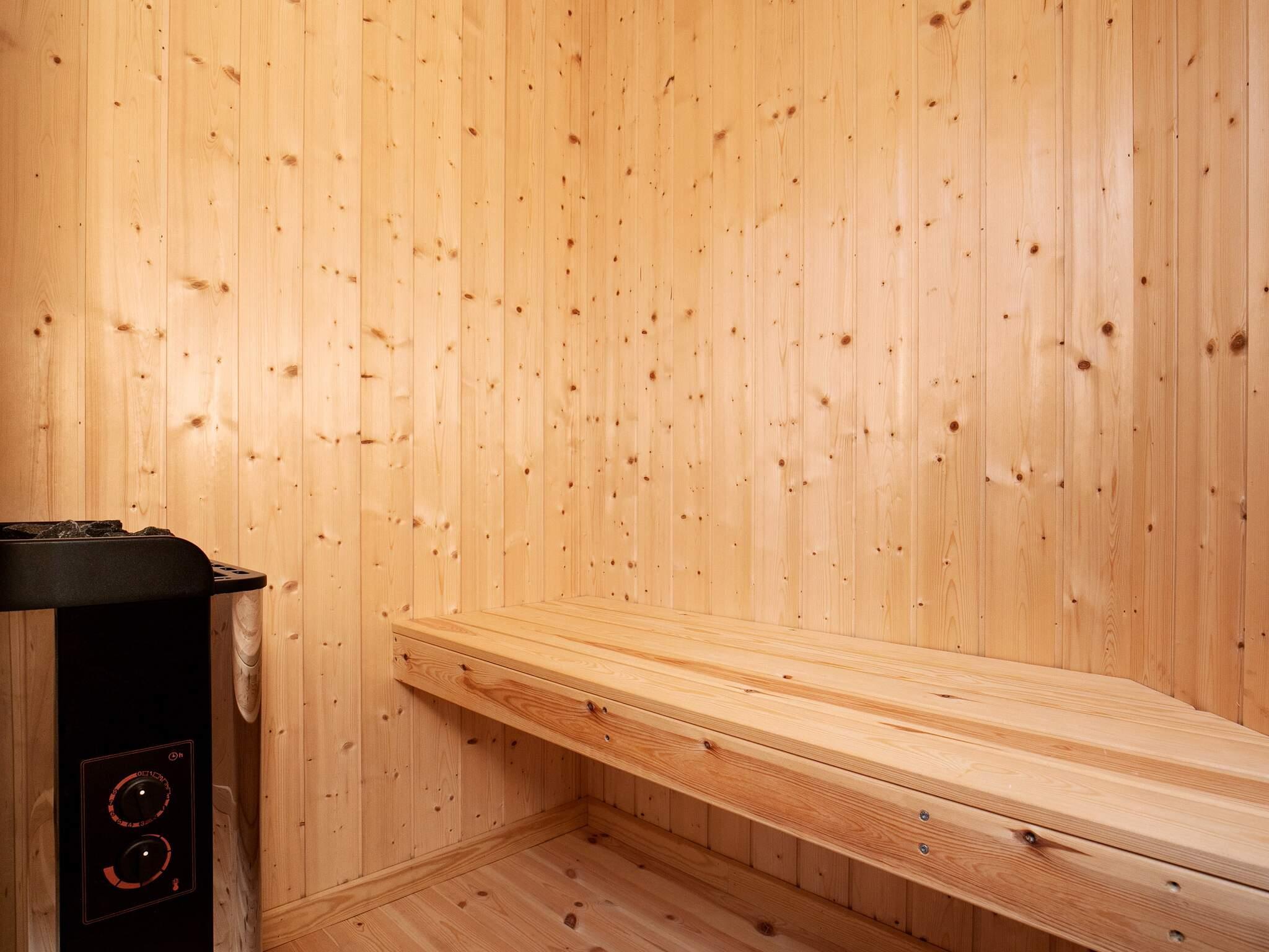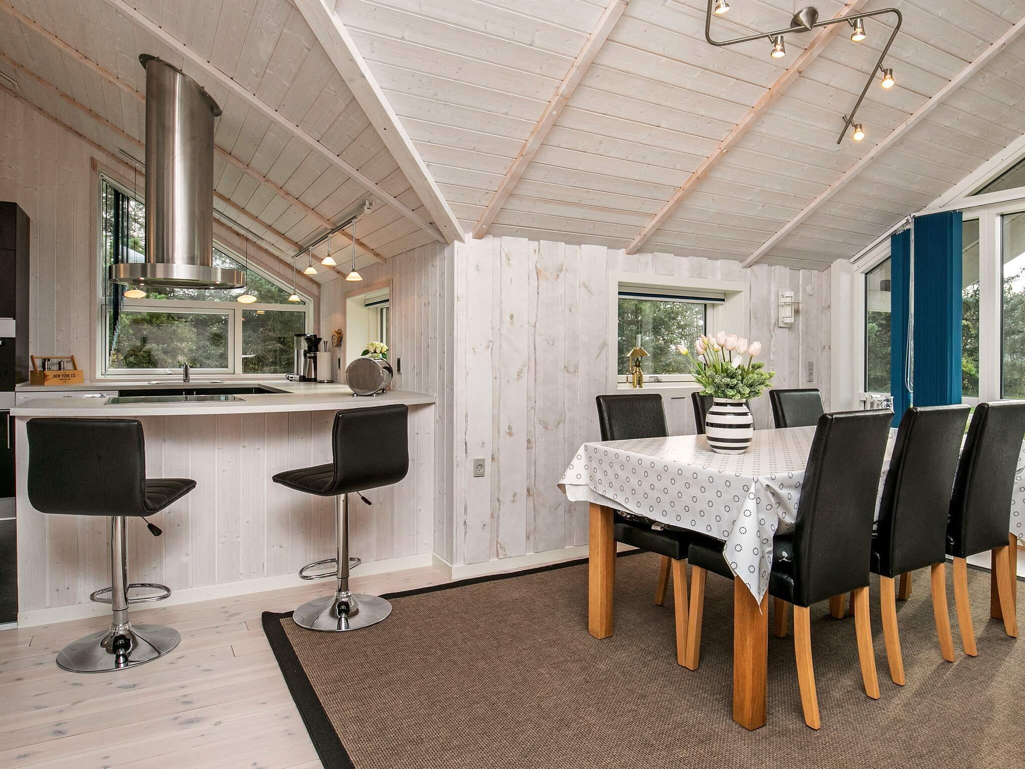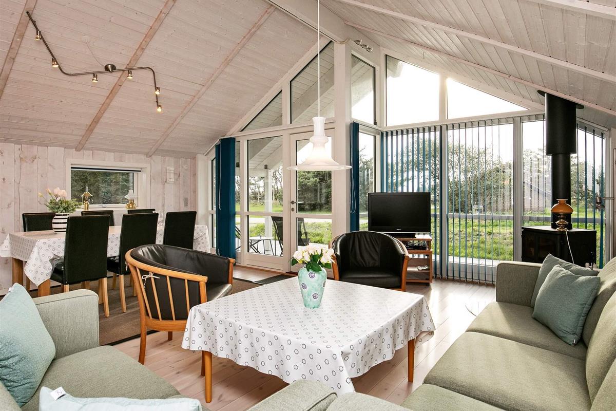 Dieses helle Ferienhaus, mit Whirlpool und Sauna für die Erholung, liegt in einem Ferienhausgebiet bei Vorupør und bietet einige wohnliche Details.