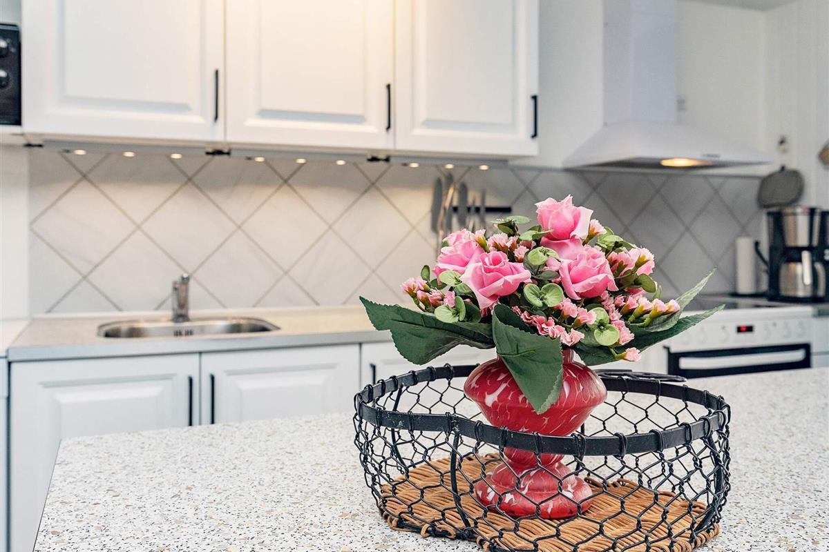 Die Einrichtung ist modern und ansprechend gestaltet. Die Küchenausstattung ist umfassend und zeitgemäß. Im Parterre findet man die Küche mit Essbereich im Anschluss daran. Außerdem großes, helles Badezimmer mit angenehmer Fußbodenheizung und direkt nebenan wärmende Sauna. Zudem großes Schlafzimmer mit Schrankplatz und Zugang zur Terrassenfläche.