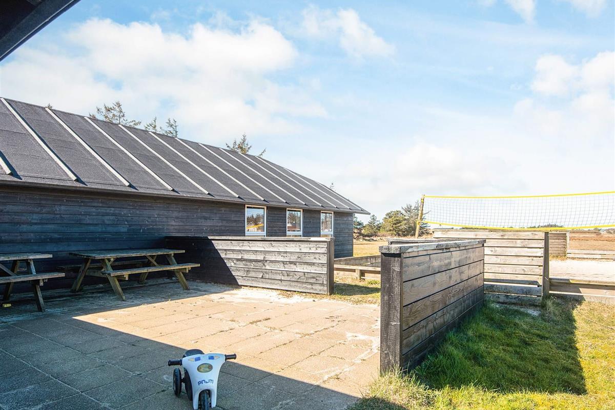 Draußen können Sie die frische Westjütländer Luft auf der großen Terrasse genießen, auf dem Grill kochen oder einfach entspannen, während die Kinder spielen.