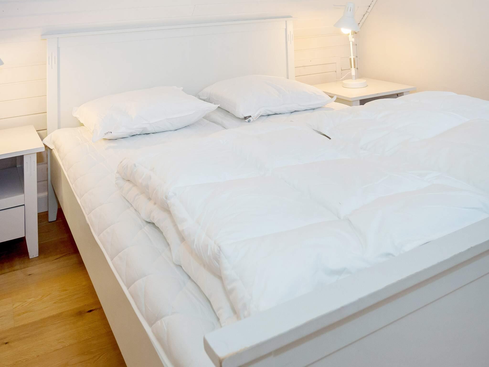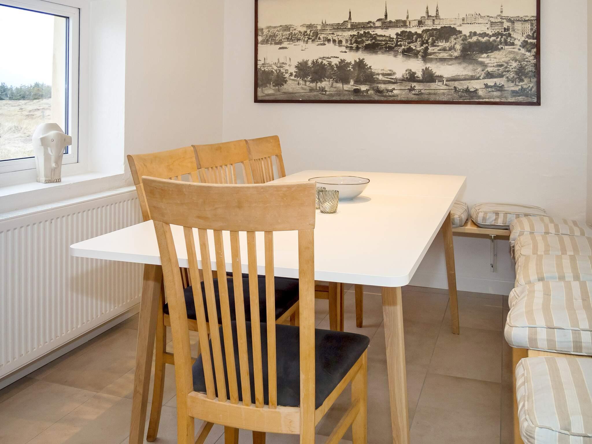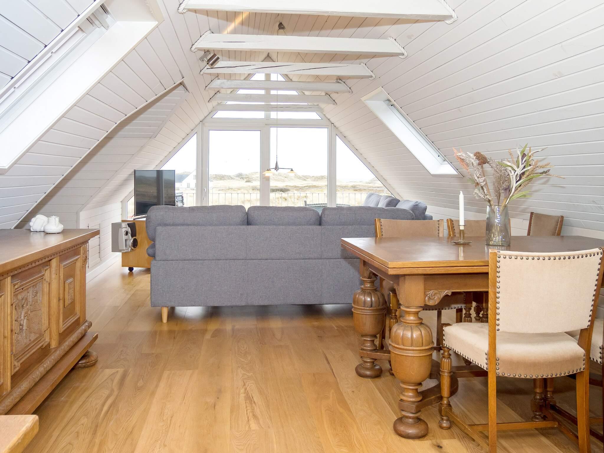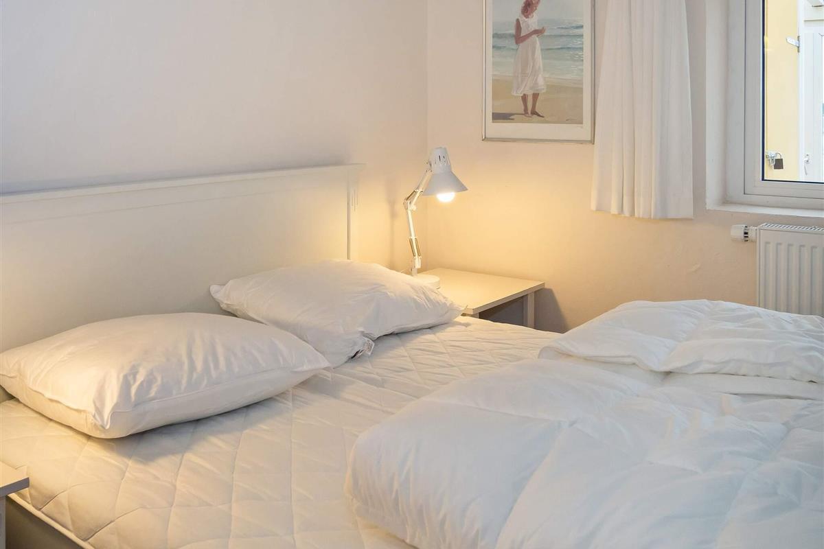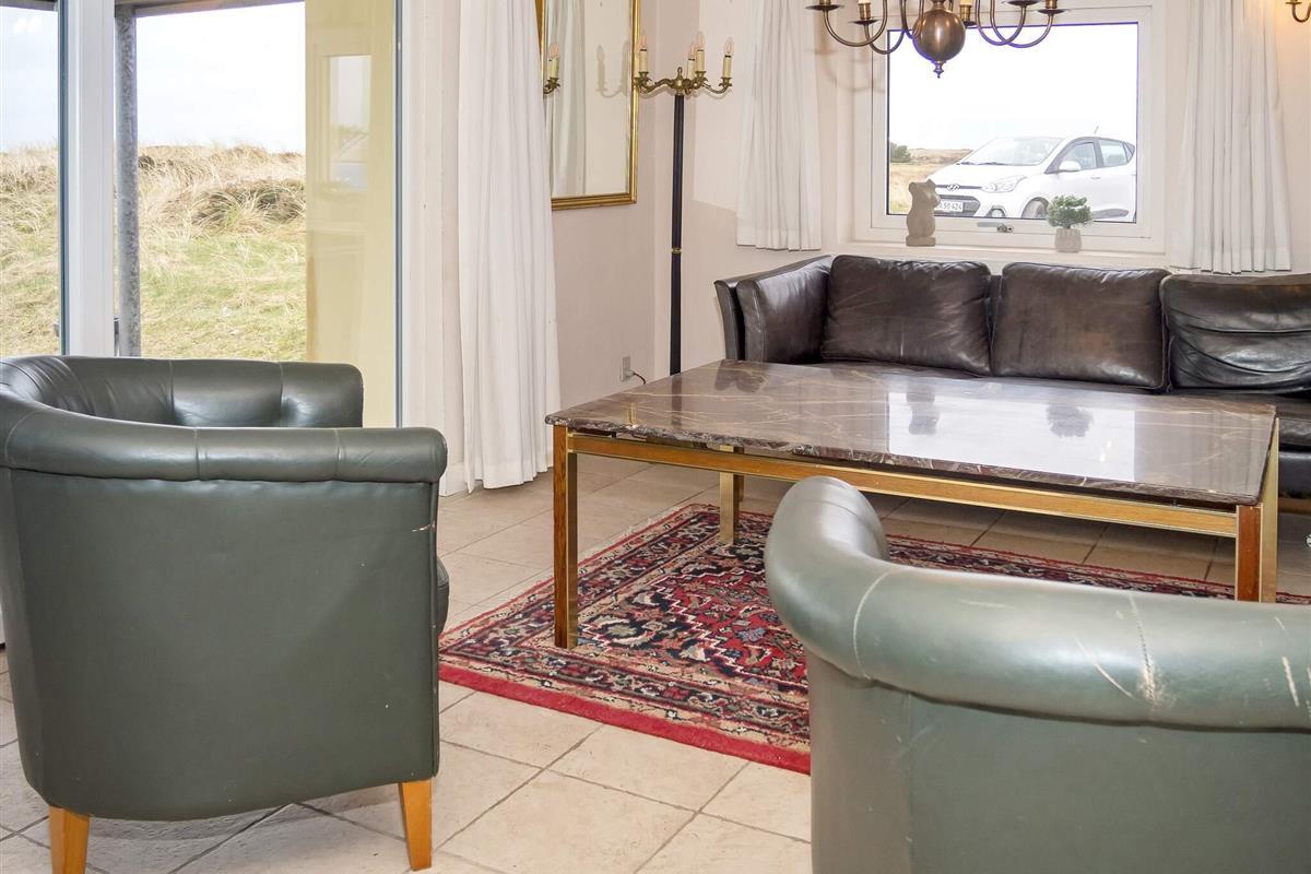 Die neue Küche von 2023 ist mit modernen Geräten, wie Spülmaschine, Ceranfeld, Mikrowelle und Gefriertruhe ausgestattet. Das Wohnzimmer verfügt über behagliche Möbel und einen Holzofen, der an kühlen Tagen gemütliche Wärme verbreitet. Für Unterhaltung sorgt der Flachbildschirm-TV, der dänische und deutsche Sender empfängt. Weiterhin sind im Erdgeschoss zwei Schlafzimmer mit Doppelbetten platziert.