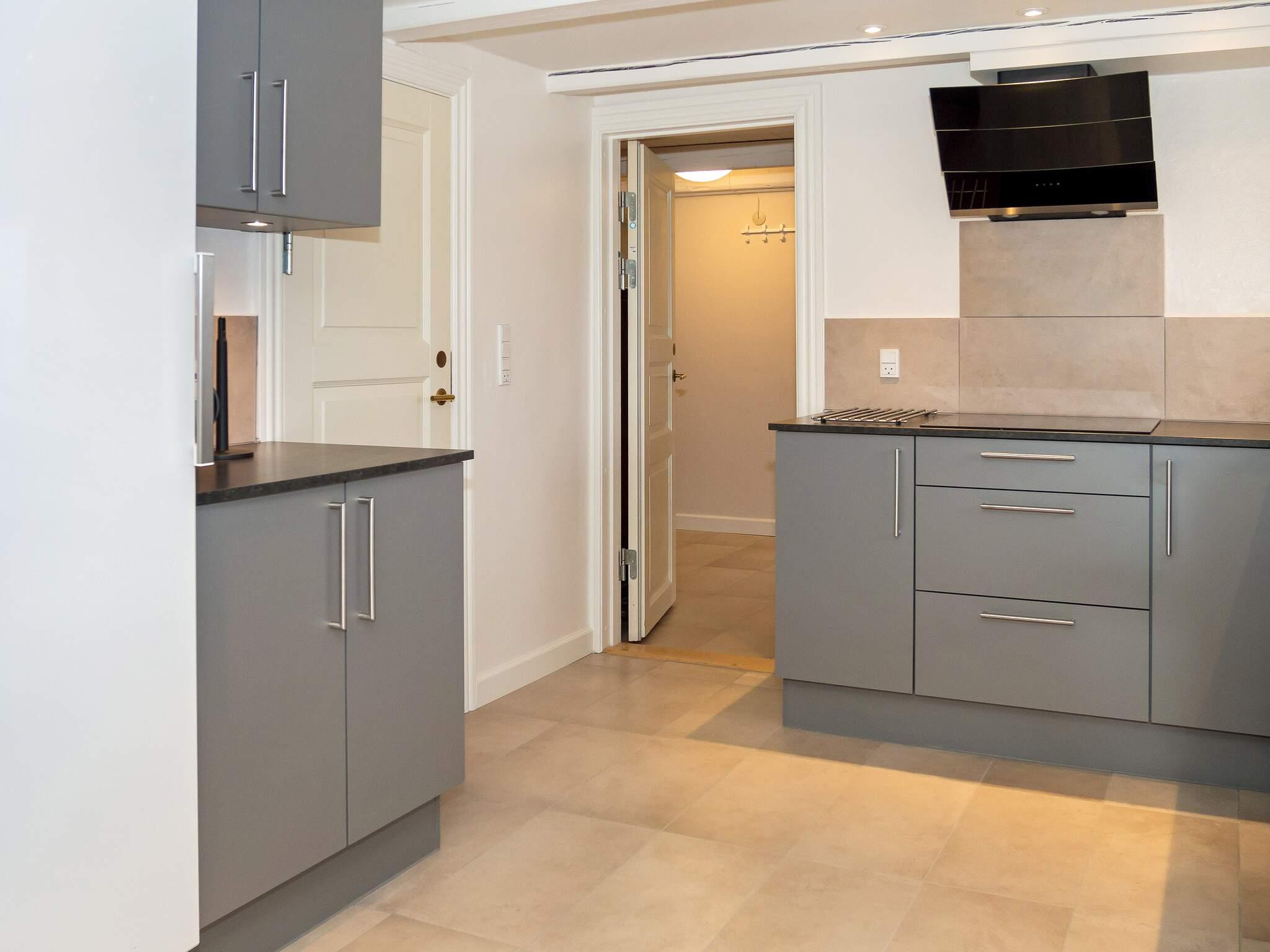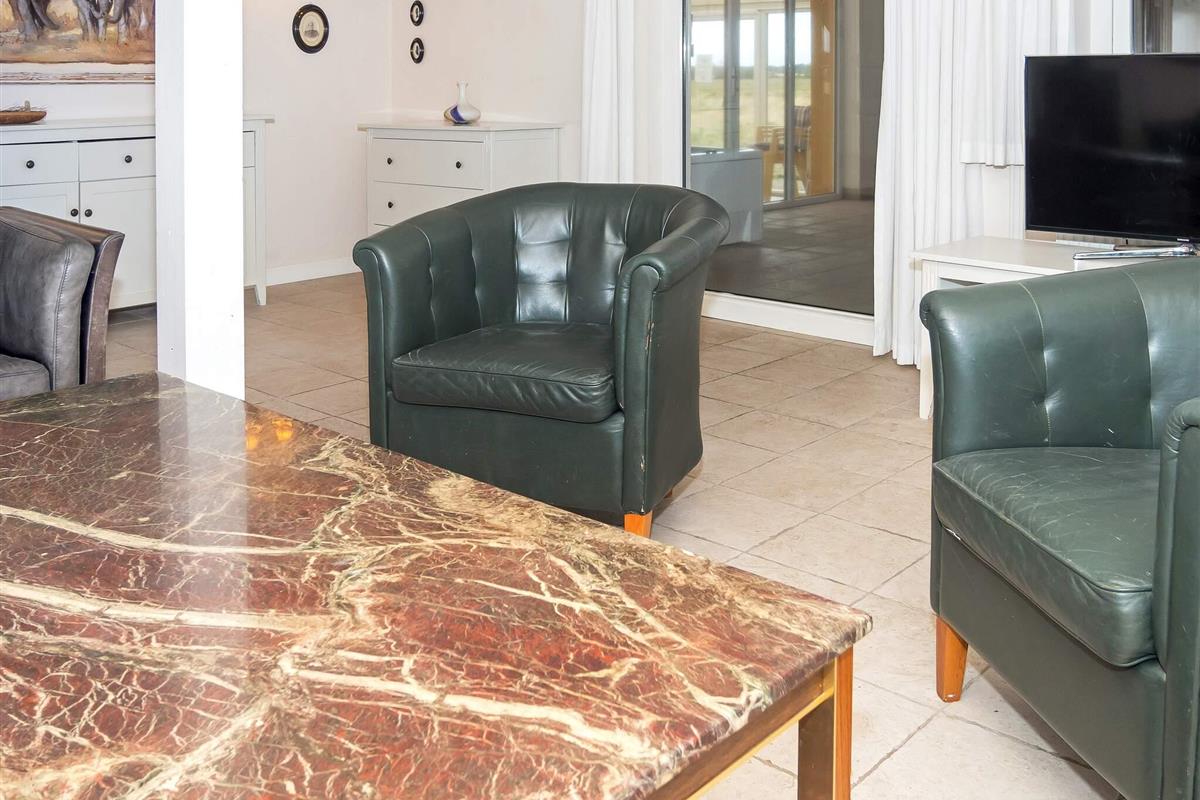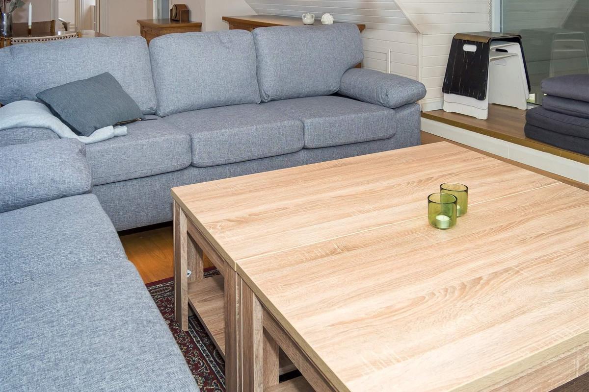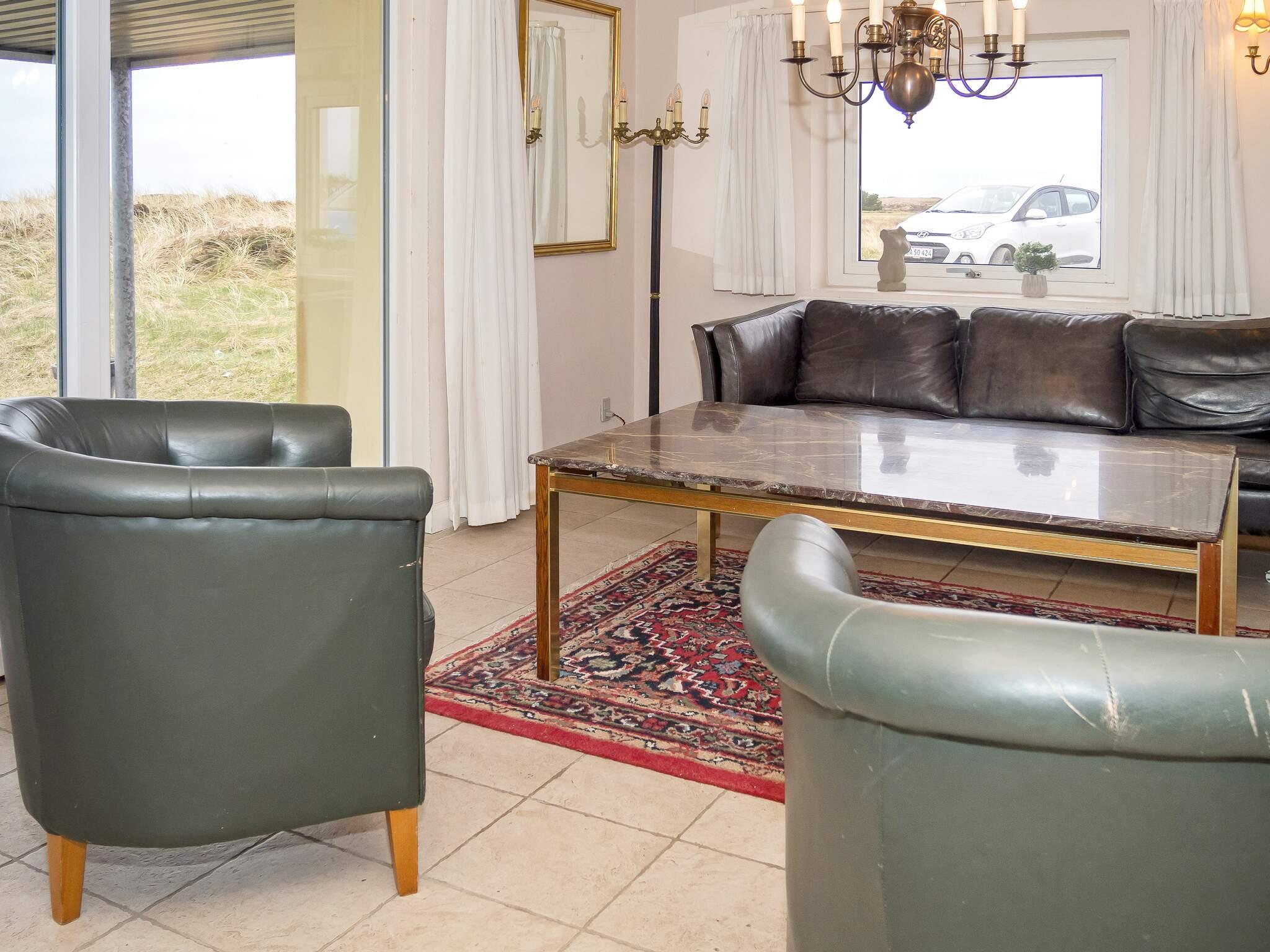 Die neue Küche von 2023 ist mit modernen Geräten, wie Spülmaschine, Ceranfeld, Mikrowelle und Gefriertruhe ausgestattet. Das Wohnzimmer verfügt über behagliche Möbel und einen Holzofen, der an kühlen Tagen gemütliche Wärme verbreitet. Für Unterhaltung sorgt der Flachbildschirm-TV, der dänische und deutsche Sender empfängt. Weiterhin sind im Erdgeschoss zwei Schlafzimmer mit Doppelbetten platziert.