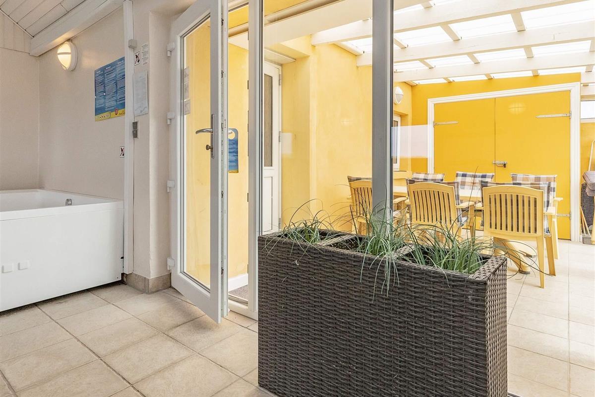 Die beiden Badezimmer befinden sich im Erdgeschoss, das eine mit Waschbecken, Dusche und WC wurde 2023 saniert. Vom anderen hat man via der verglasten Veranda Zutritt weiter zum Poolbereich, in dem auch die Sauna und der Whirlpool untergebracht sind. Der Pool wurde 2023 renoviert. Waschmaschine und Wäschetrockner vorhanden. Die Terrassen und die verglaste Veranda laden auch an kühleren Tagen zum Verweilen ein.