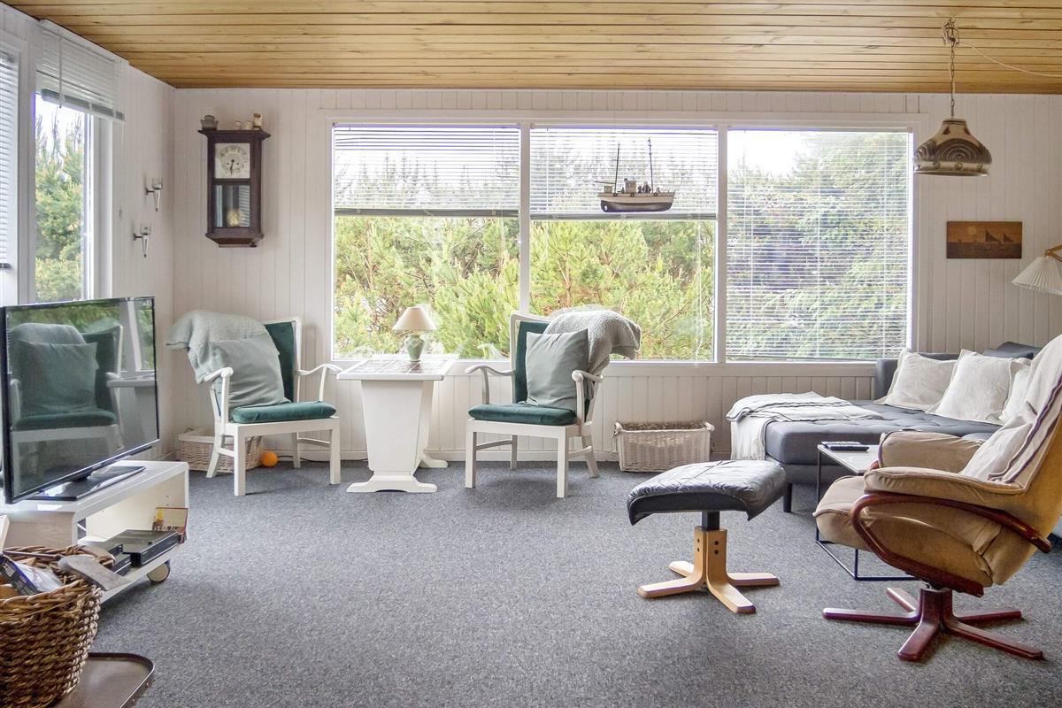 Traditionelles Ferienhaus in einem ruhigen Ferienhausgebiet in der Nähe von Vorupør. Das Anwesen liegt auf einem 700 m² großen Naturgrundstück, umgeben von hohen, schützenden Bäumen, und bietet Privatsphäre und ein Gefühl der Abgeschiedenheit. Die Nordseeküste ist nur 2 km entfernt und bietet einfachen Zugang zu breiten Sandstränden und Küstenwanderwegen.