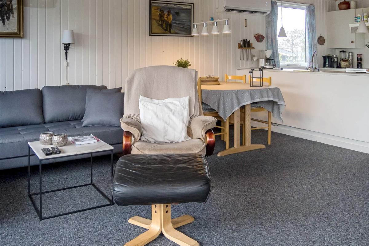 Das für die Saison 2022 renovierte Haus ist hell, einladend und geschmackvoll eingerichtet. Der offene Wohnküchenbereich bildet das Herzstück des Hauses und bietet einen einladenden Ess- und Sitzbereich für Familientreffen. Die Küche ist mit Herd und Backofen, Kühl-Gefrierkombination, Mikrowelle und Geschirrspüler gut ausgestattet und ermöglicht so eine bequeme und angenehme Selbstversorgung. Das Wohnzimmer kombiniert bequeme Möbel mit einem Holzofen und einer umweltfreundlichen Wärmepumpe und schafft so eine gemütliche Atmosphäre für kühlere Abende. Von hier aus gelangen Sie direkt auf die Terrasse, um Mahlzeiten zu genießen oder im Freien zu entspannen.