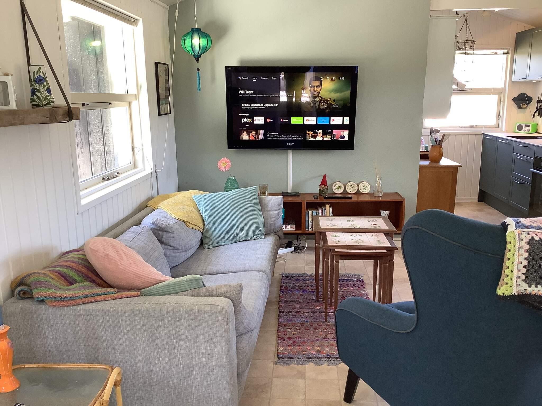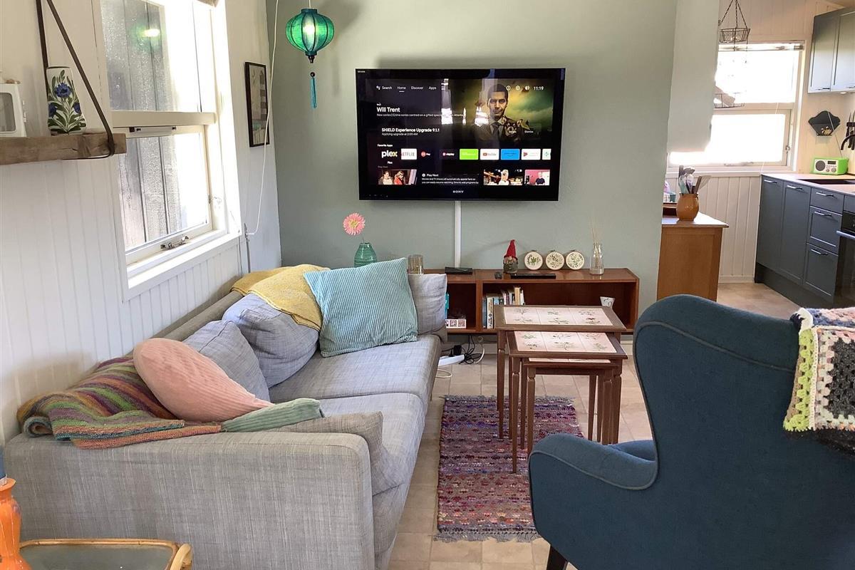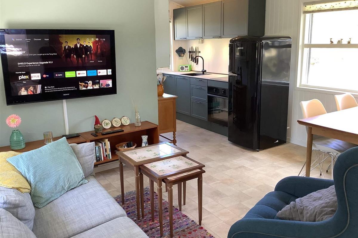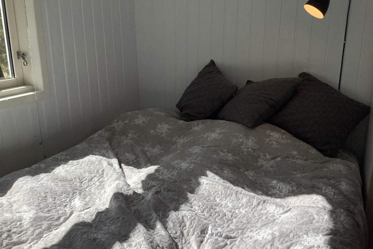 Offen kombinierter Küchen-/Wohnbereich mit Ess- und Sitzecke sowie direktem Zugang zur Terrassenfläche. Im Haus gibt es zwei Schlafzimmer mit Doppelbett. Fernsehraum mit gemütlichem Holzofen sowie klimafreundlicher Wärmepumpe. Auf der Terrasse können Sie die schönen Sommertage und -abende mit Sonne und Entspannung genießen.
