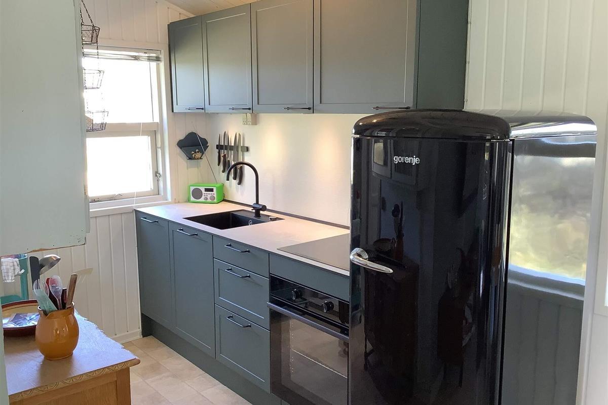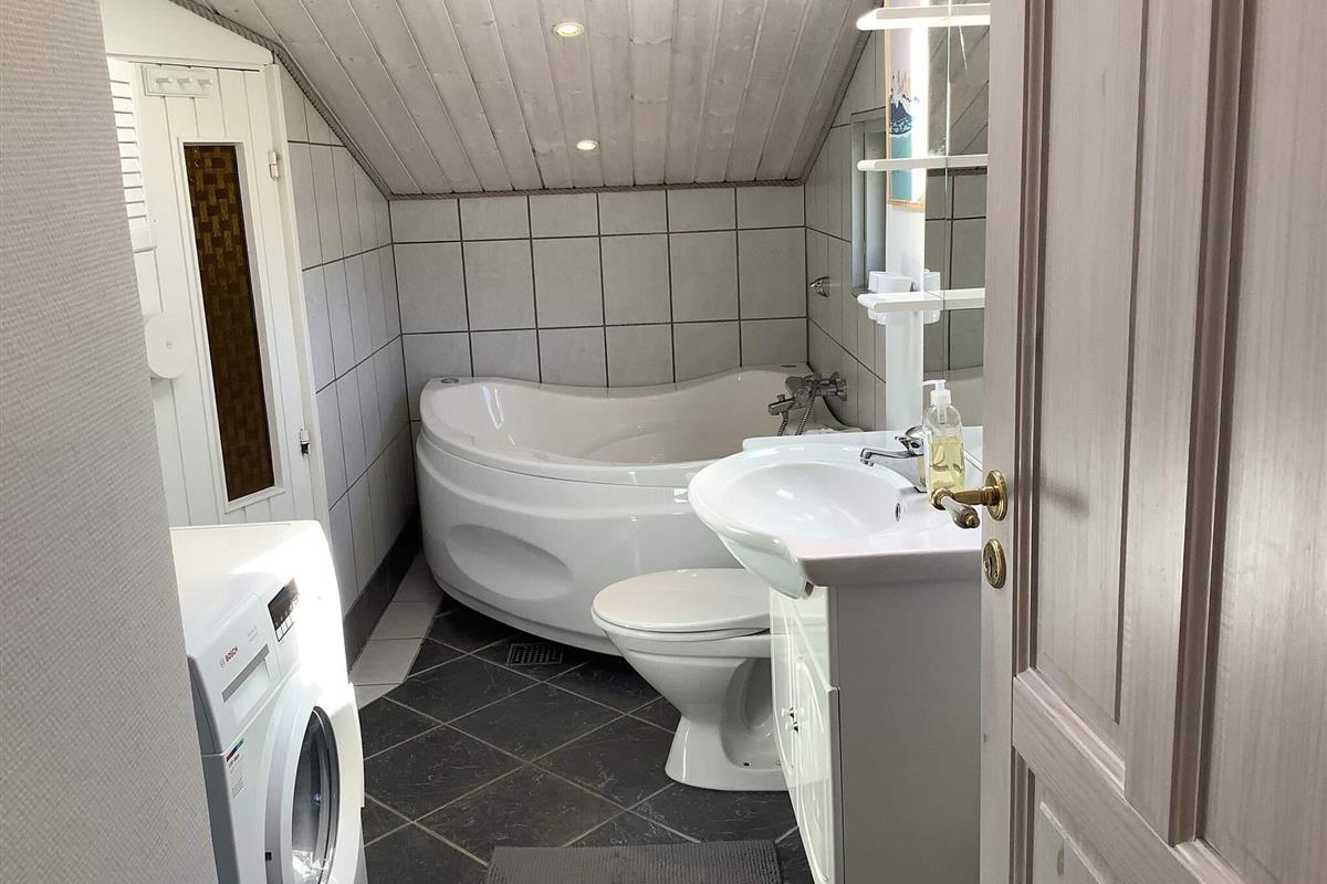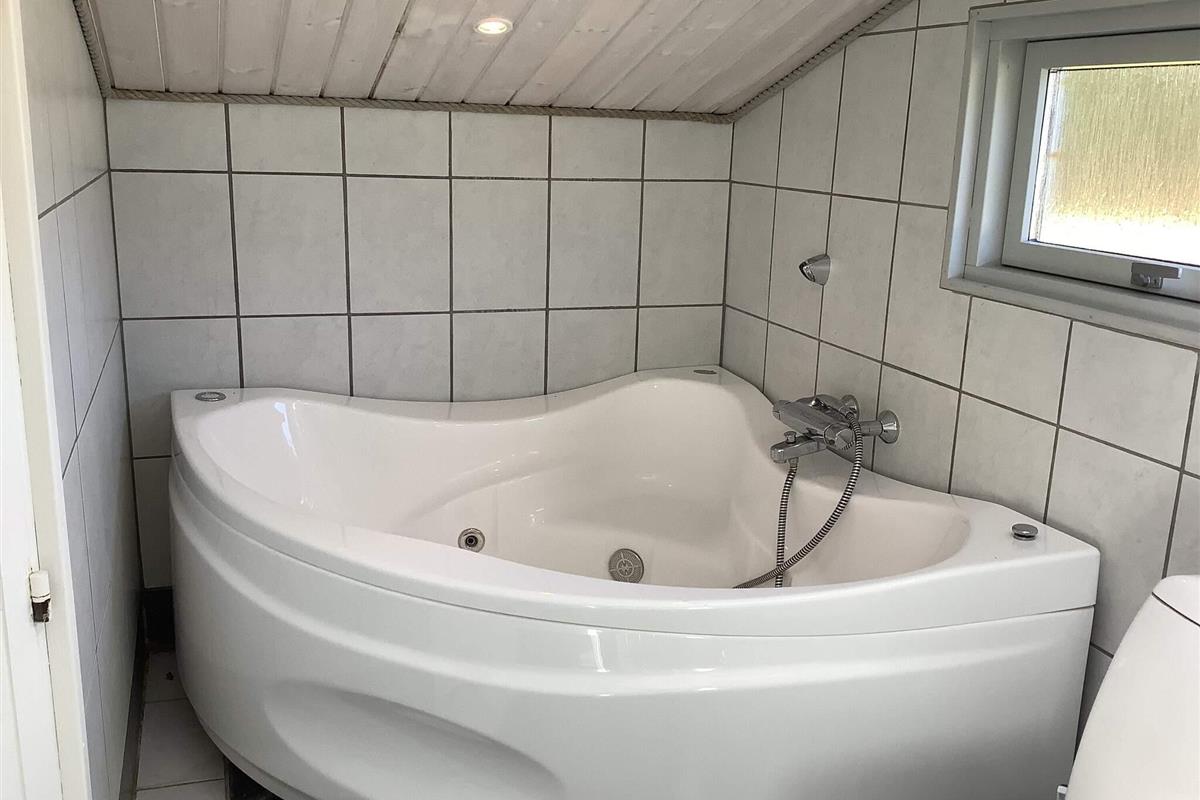 Traditionelles Ferienhaus in Sdr. Vorupør, mit Whirlwanne im Bad und gemütlicher Wohnatmosphäre mit Holzverkleidung in hellen Farben und familienfreundlicher Ausstattung.